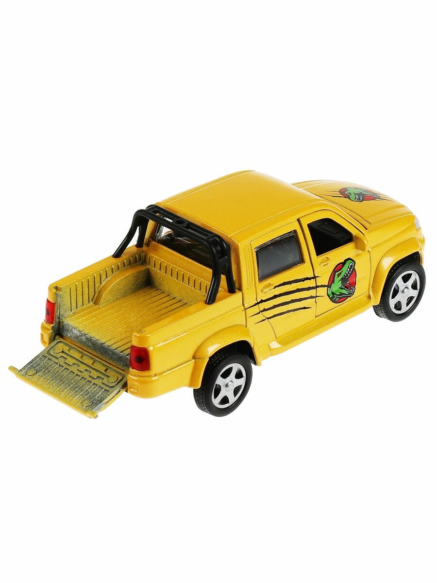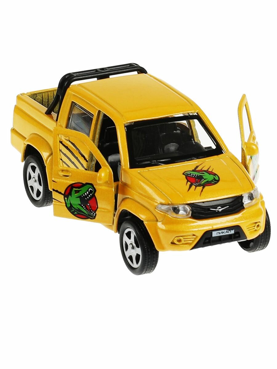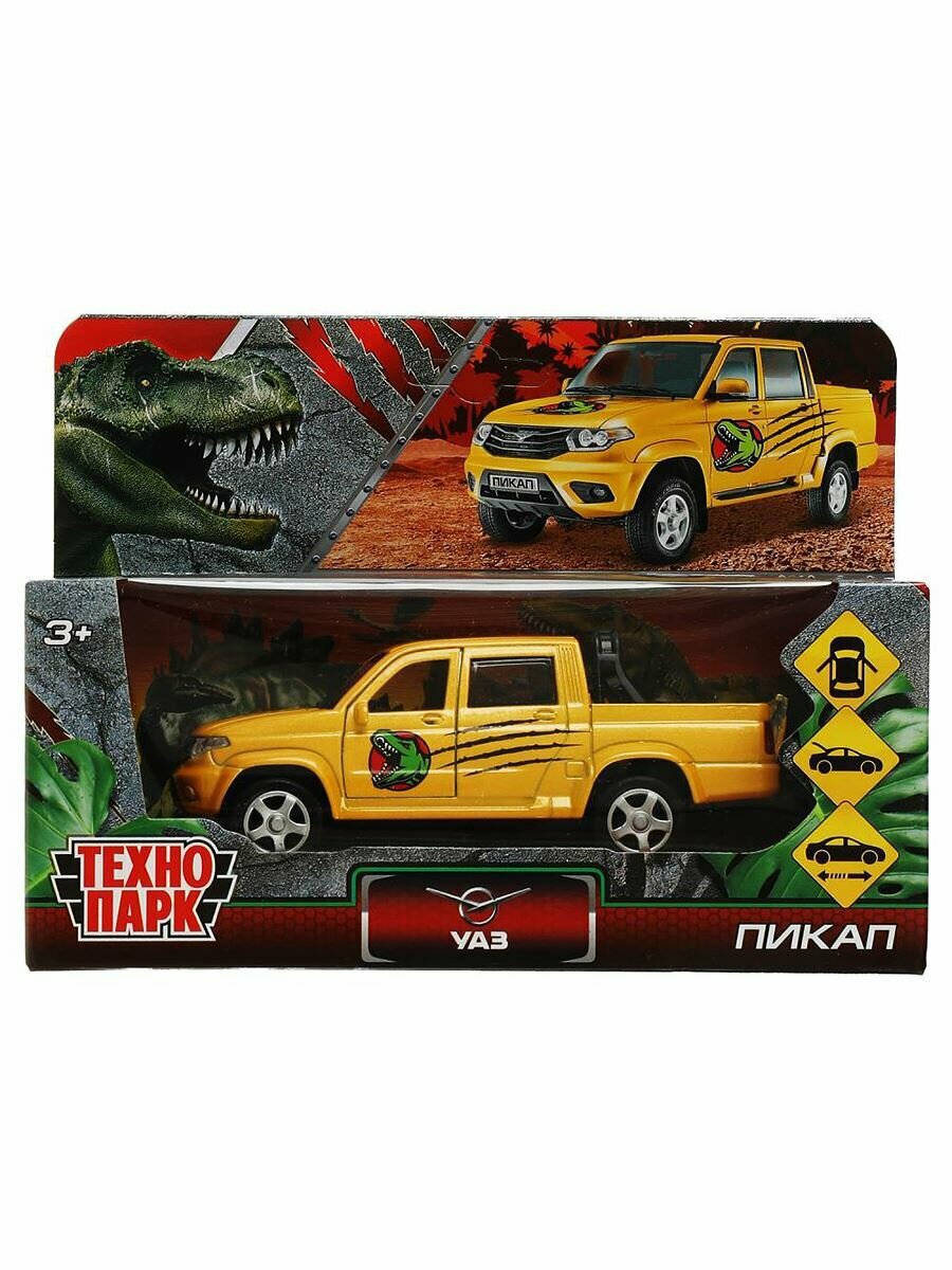 Машина Уаз Pickup Динозавры 12 см желтая металл инерция Технопарк, PICKUP-12DIN-YE