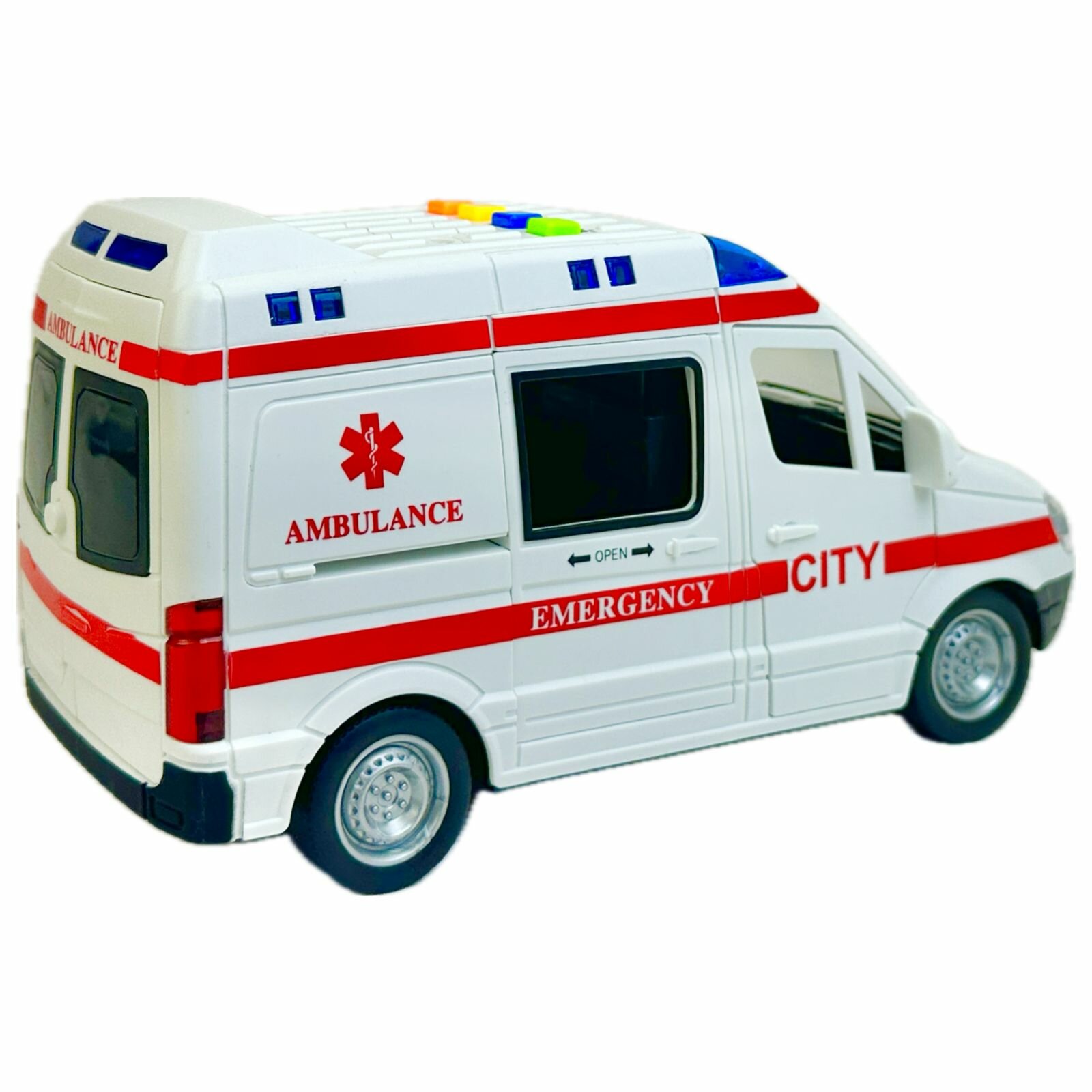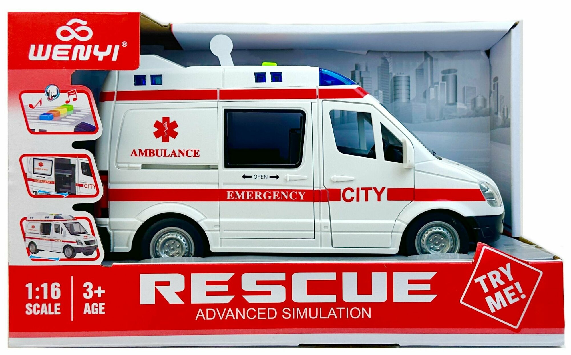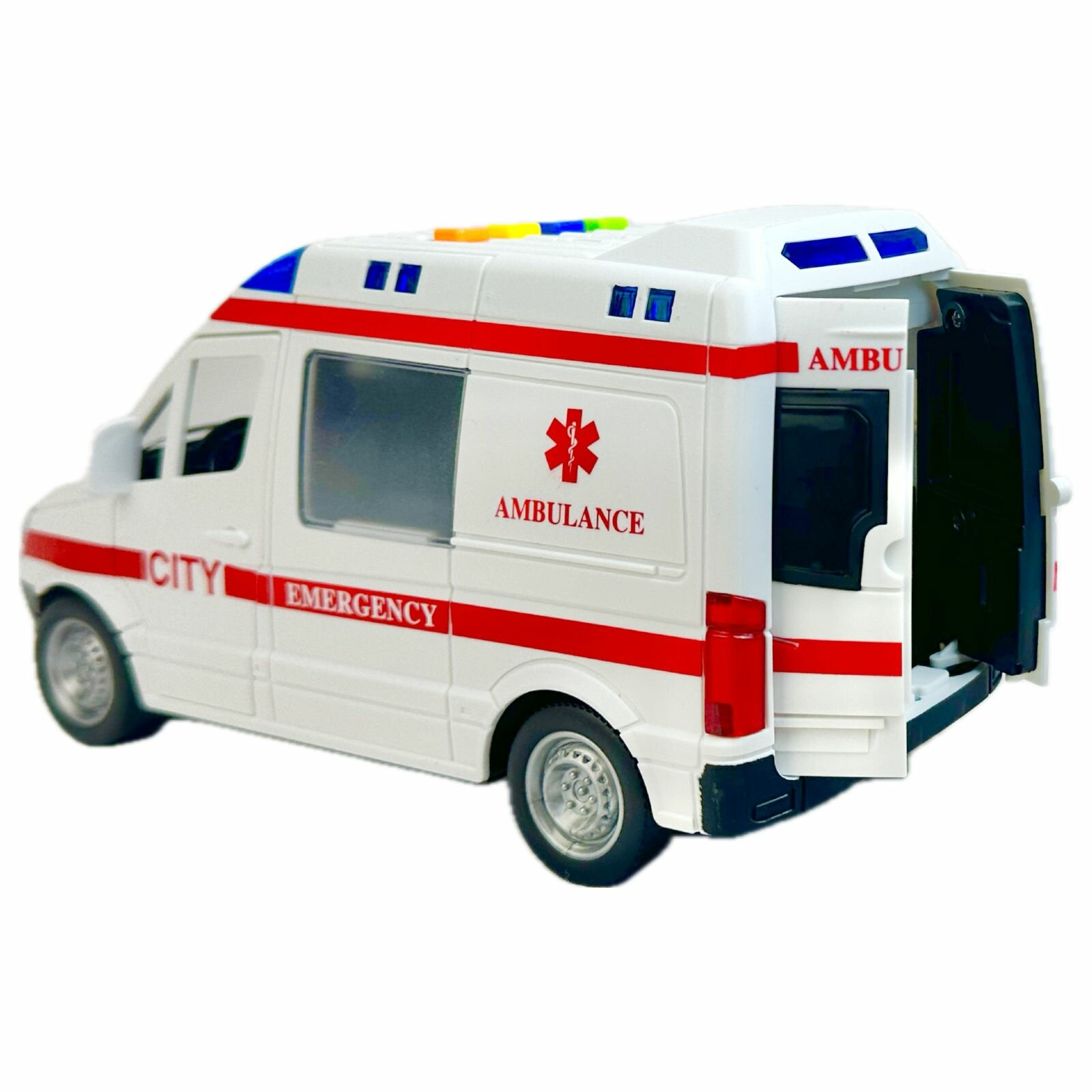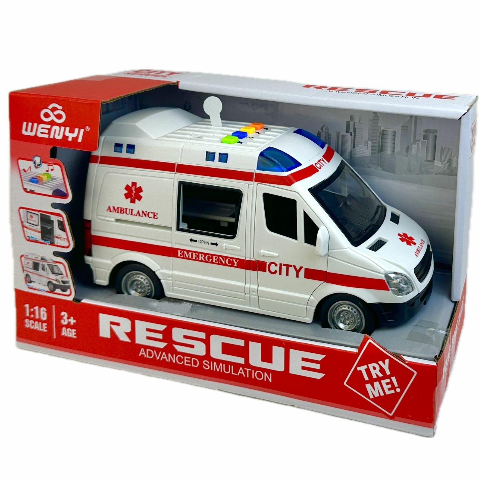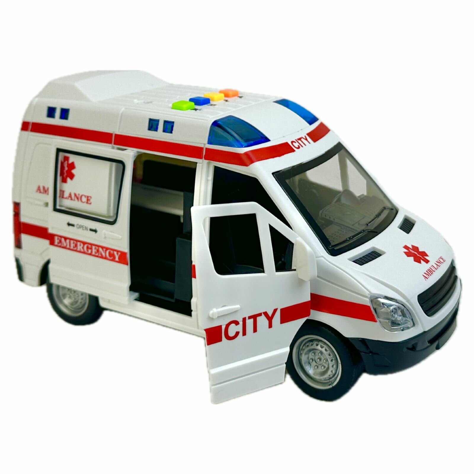 Купить Инерционная машина Скорая помощь, 1:16, двери открываются, мигалки светятся, реалистичные спецсигналы, 21х11х10 см