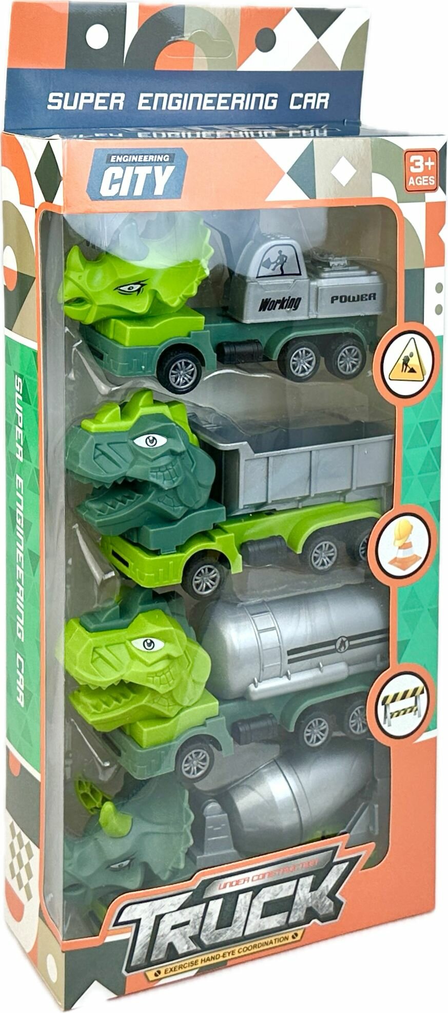 Купить Набор инерционных машинок Truck, машинка динозавр, самосвал, бетономешалка, экскаватор, бензовоз, подвижные детали, 36х16х6 см