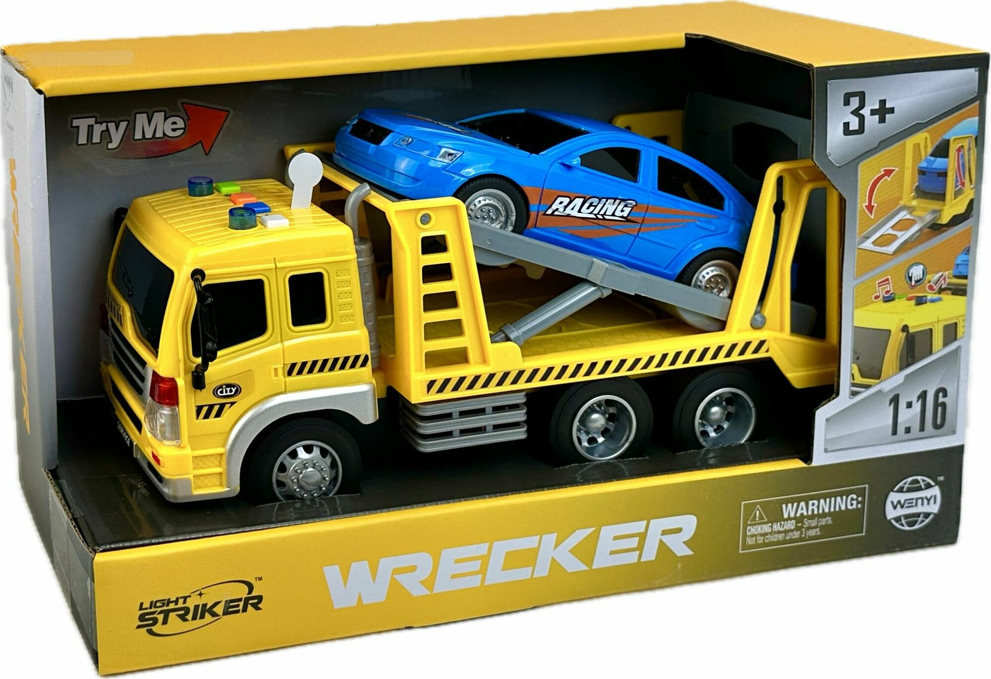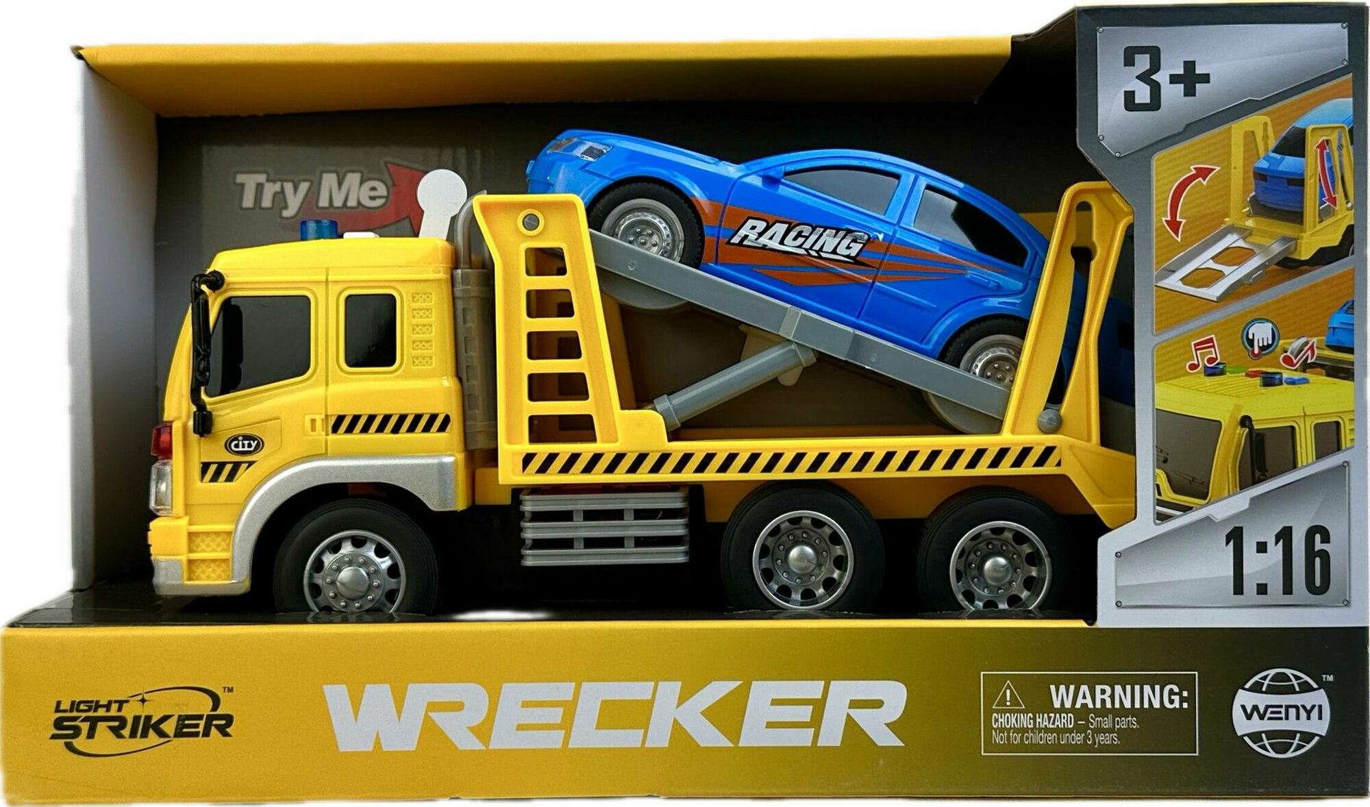 Купить Инерционный Эвакуатор с машинкой Wrecker, 1:16, маячки светятся, реалистичные спецсигналы, подвижные элементы, 26х12х19 см