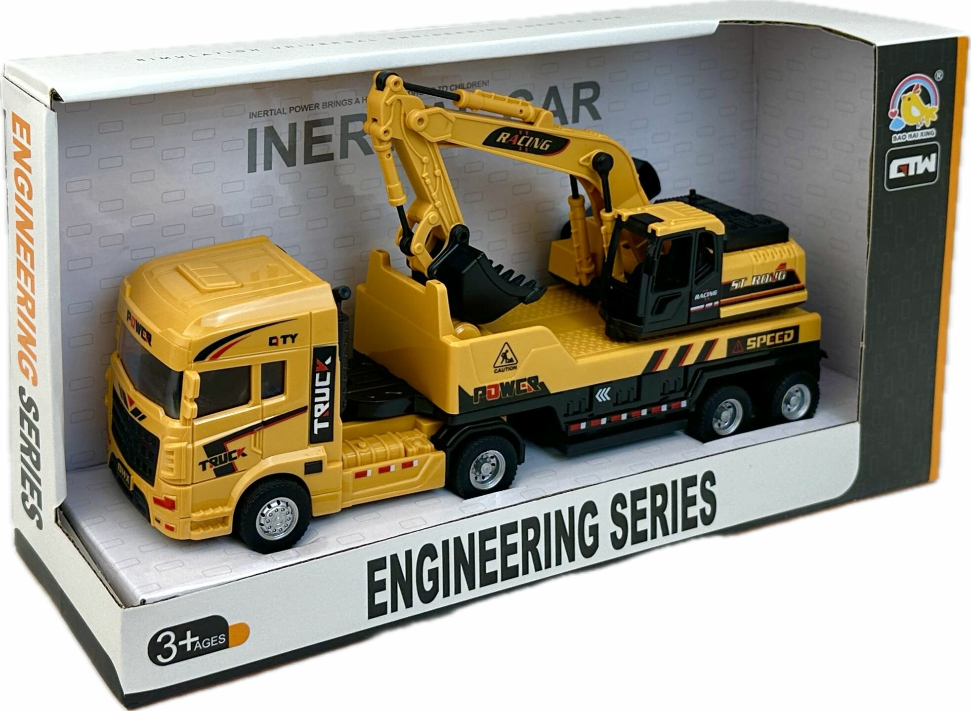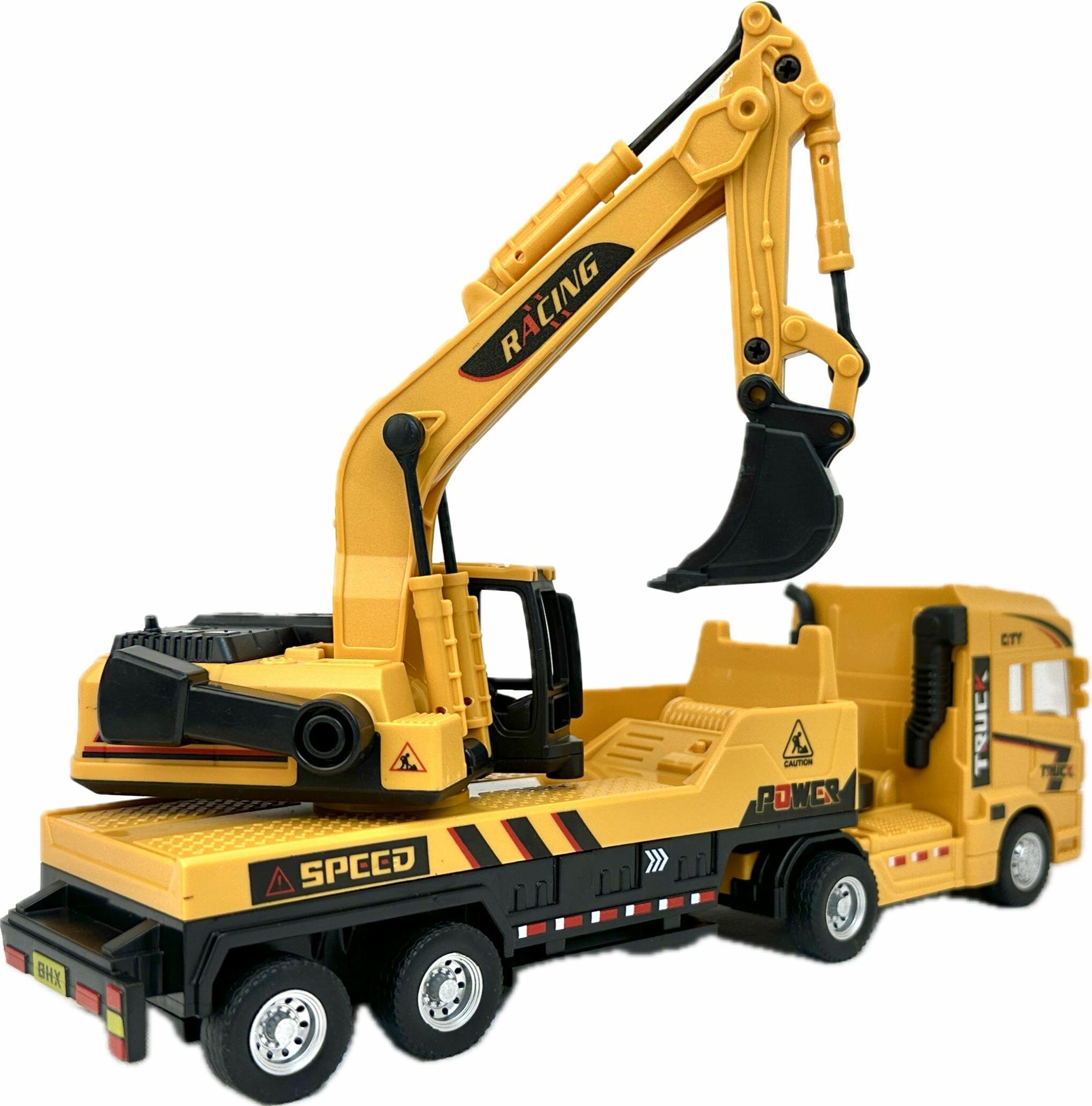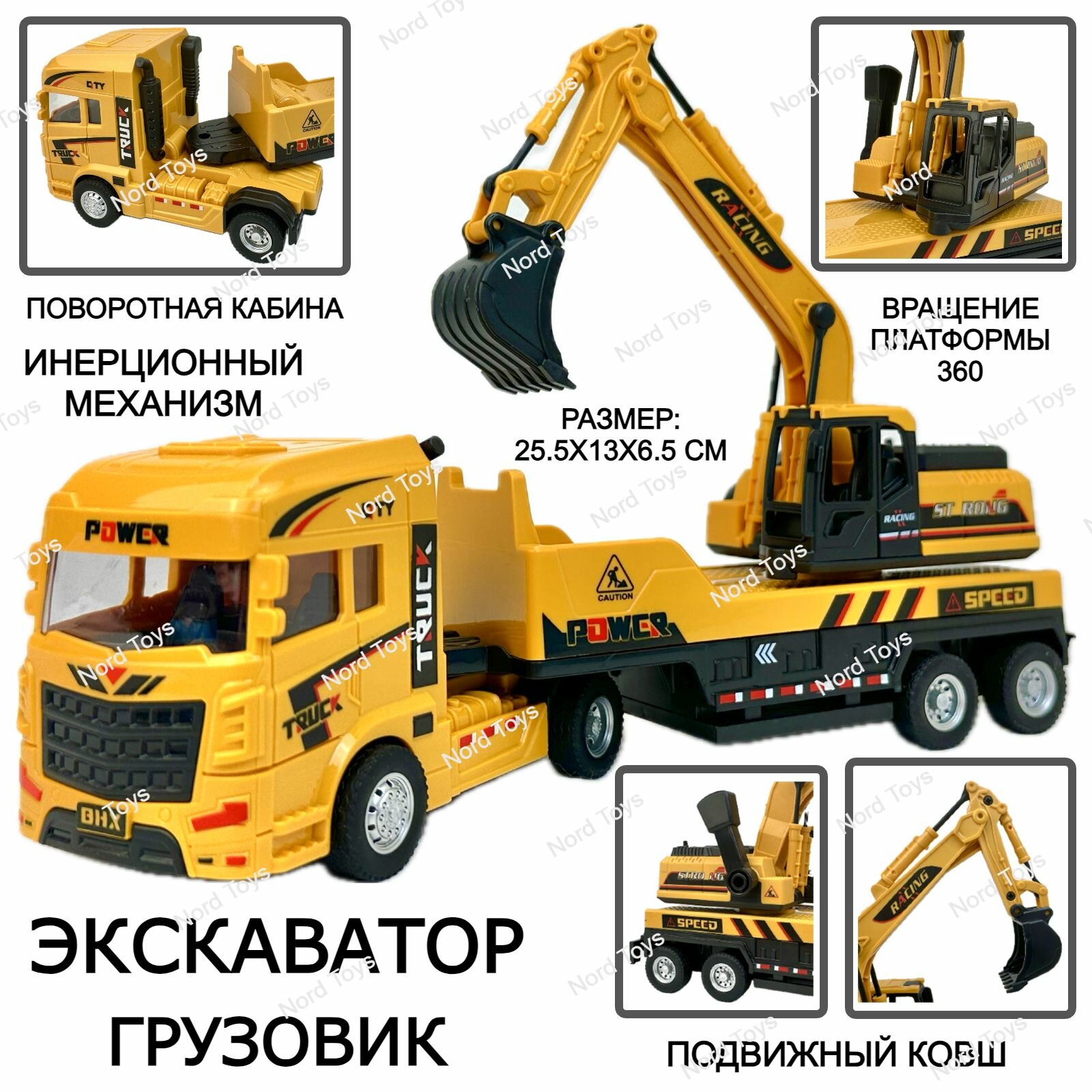 Купить Инерционный грузовик экскаватор, поворотная кабина, вращение платформы 360, подвижный ковш, 25х13х6 см
