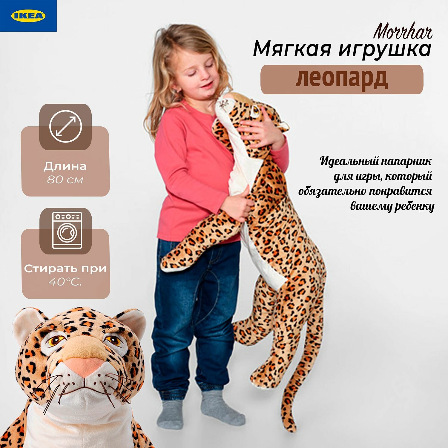 СохранитьMORRHÅR моррхор мягкая игрушка 80 см леопард/бежевый интересное: