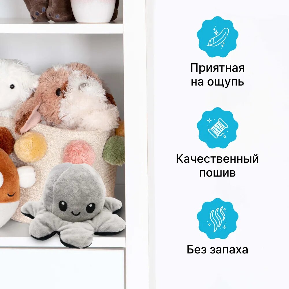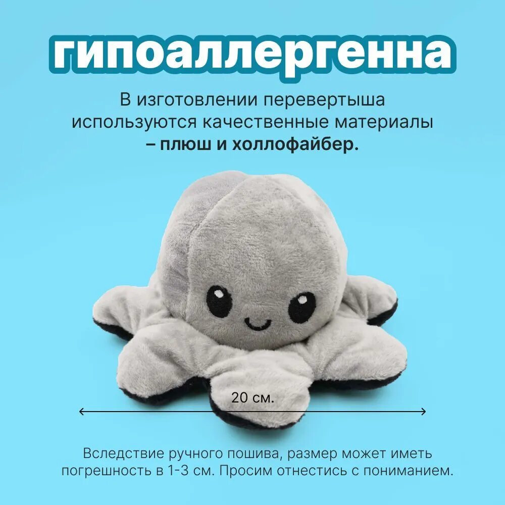Осьминог перевертыш мягкая игрушка двусторонняя, двусторонняя, черный и серый, 20 см интересное:
