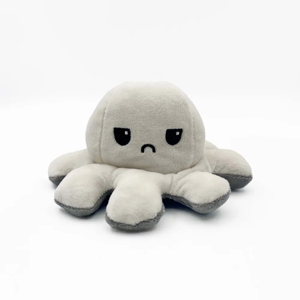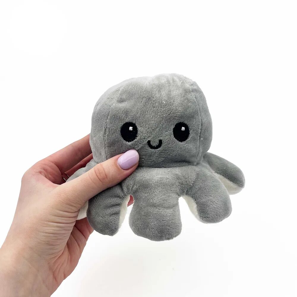 Купить Осьминог перевертыш мягкая игрушка двусторонняя, цвет: молочный и серый, 20 см