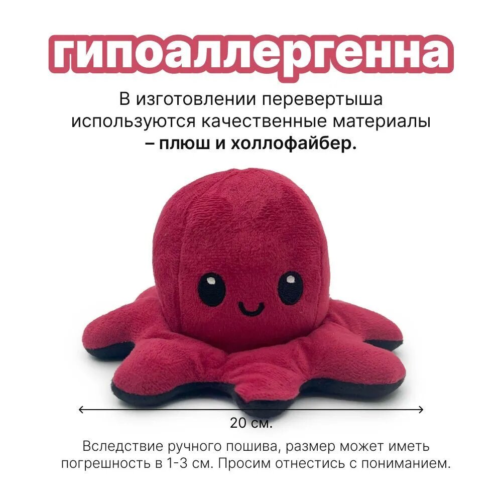 Купить Осьминог перевертыш мягкая игрушка двусторонняя, красный и черный, 20 см