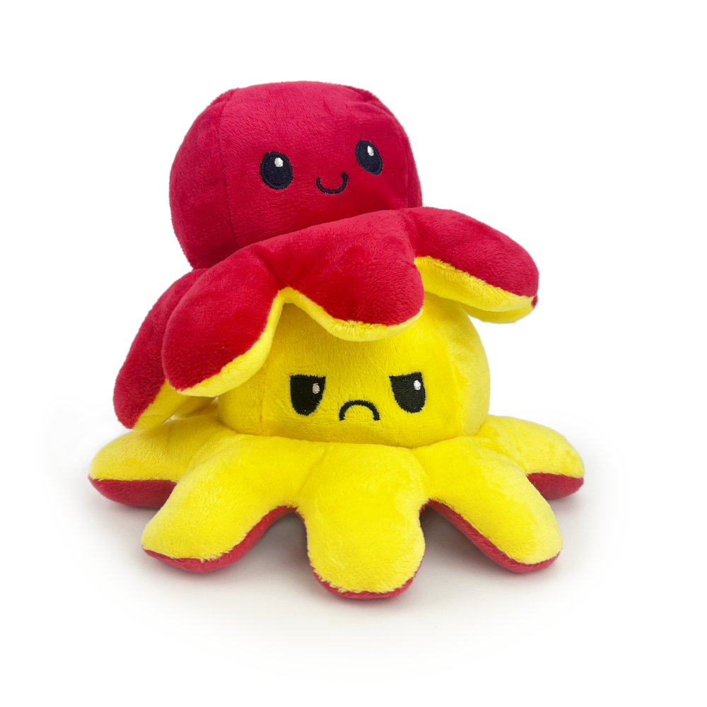 Купить Осьминог перевертыш мягкая игрушка двусторонняя, цвет: красный и желтый, 20 см