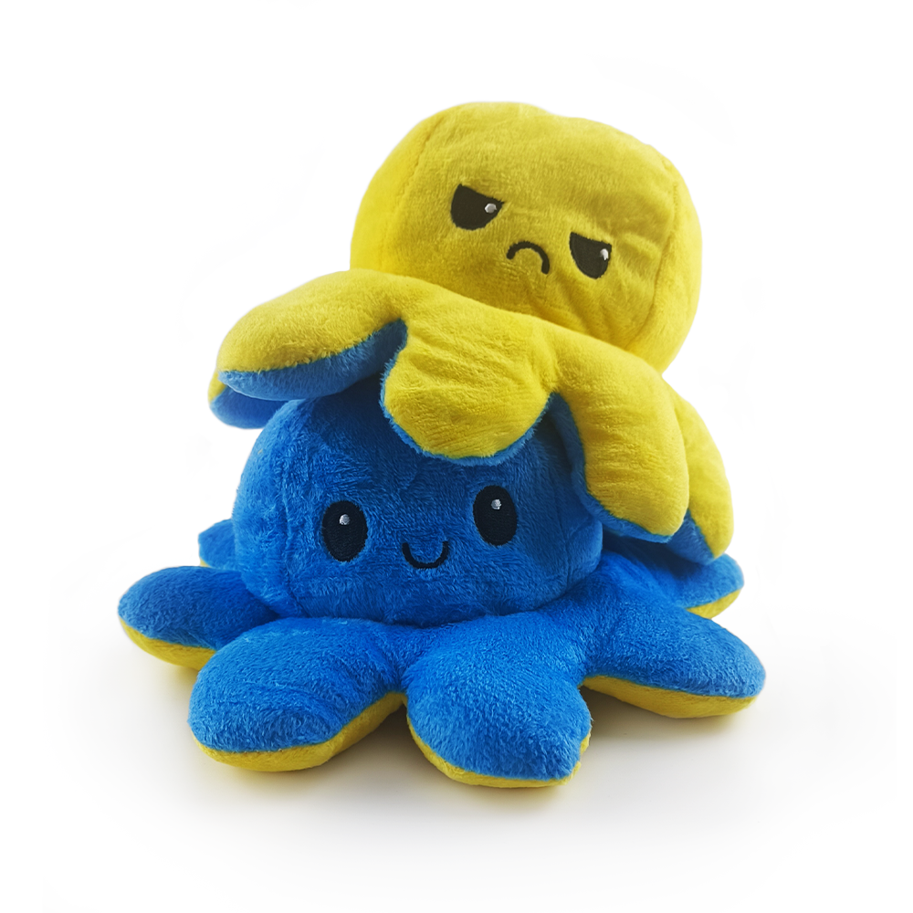 Купить Осьминог перевертыш мягкая игрушка двусторонняя, цвет: синий и желтый, 20 см