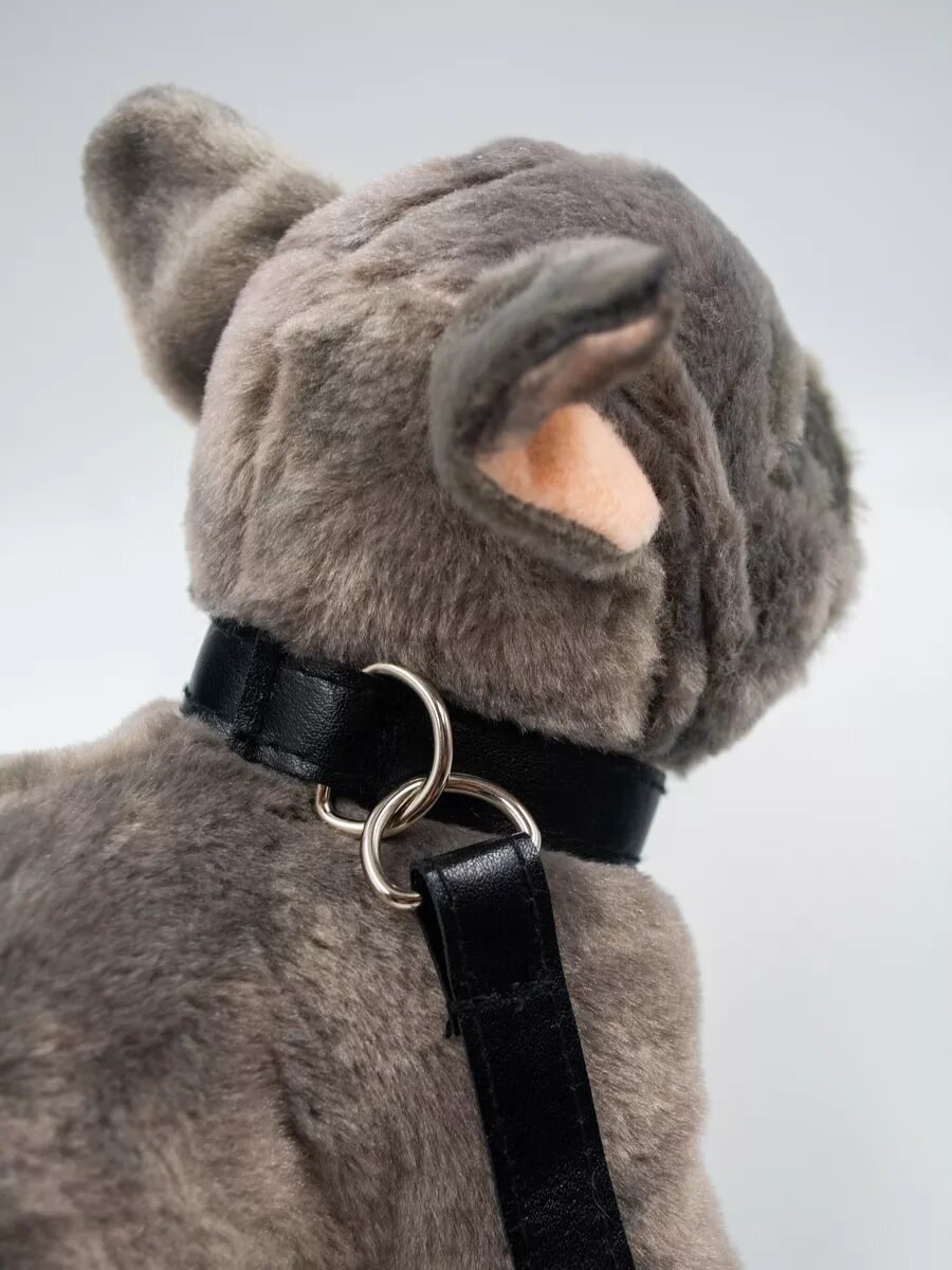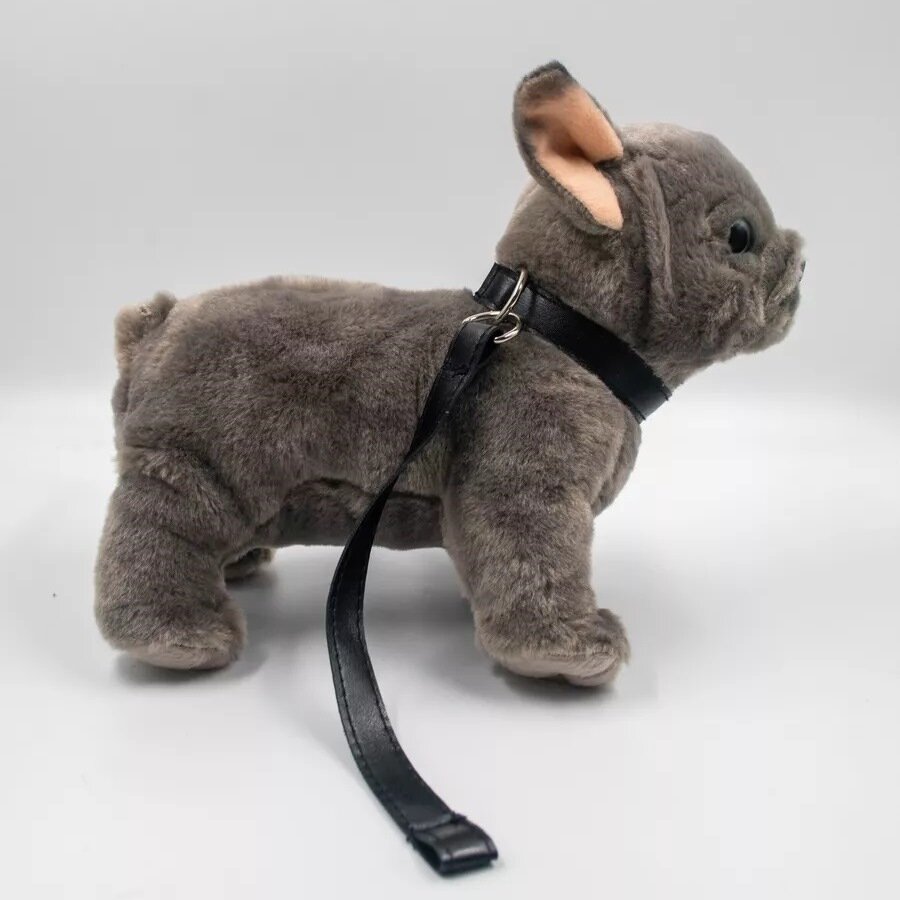 Игрушка мягконабивная LEOSCO Бульдог французский с поводком серый 23 см интересное: