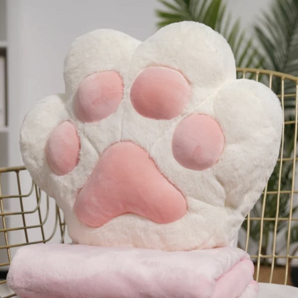 Купить Мягкая игрушка подушка обнимашка с пледом кошачья лапка 40 см.