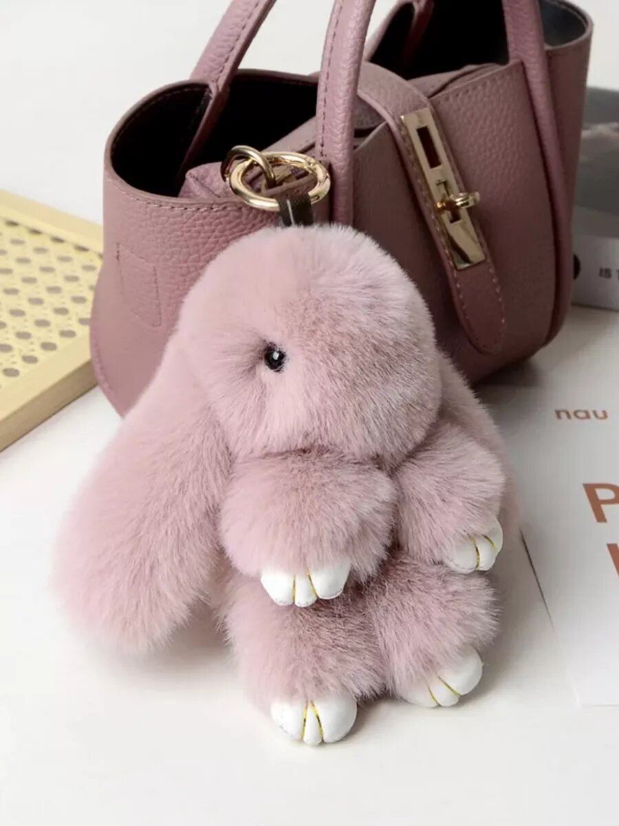 Брелок игрушка для ключей и сумок кролик из меха интересное: