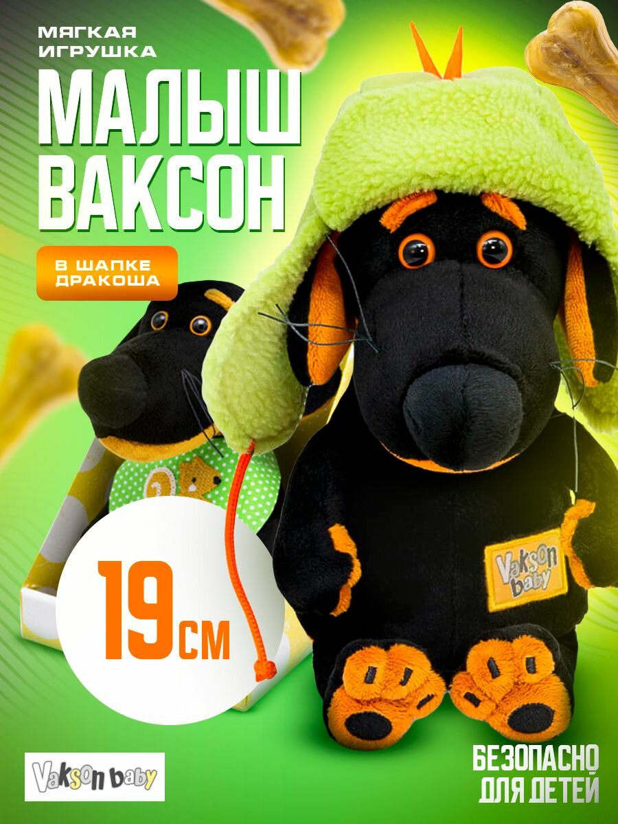 Мягкая игрушка будибаса в подарочной упаковке - Ваксон BABY в шапке "Дракоша", 19 см интересное: