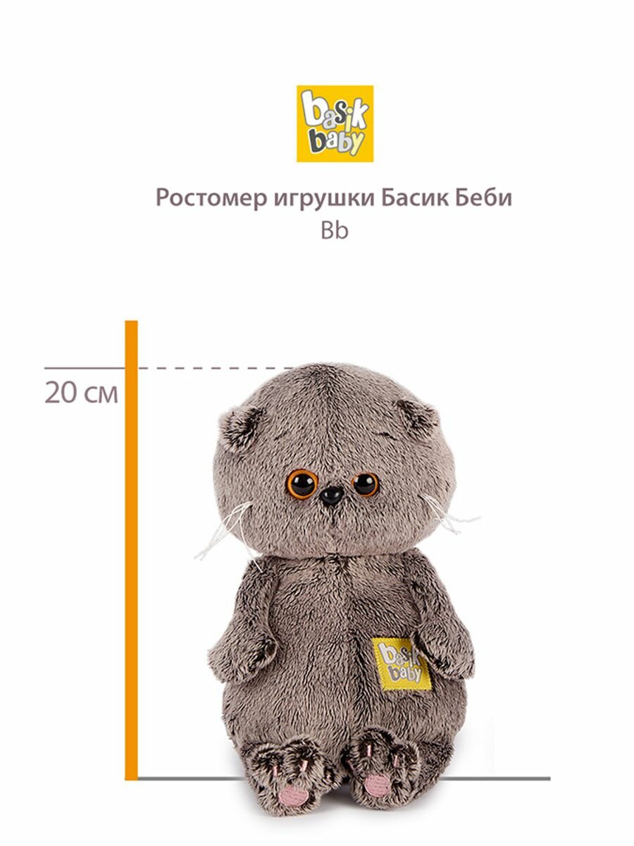 Budi Basa Мягкая Игрушка Кот Басик BABY в комбинезоне с сердечком (20см, в подарочной коробке) BB-132, (ООО "МПП")