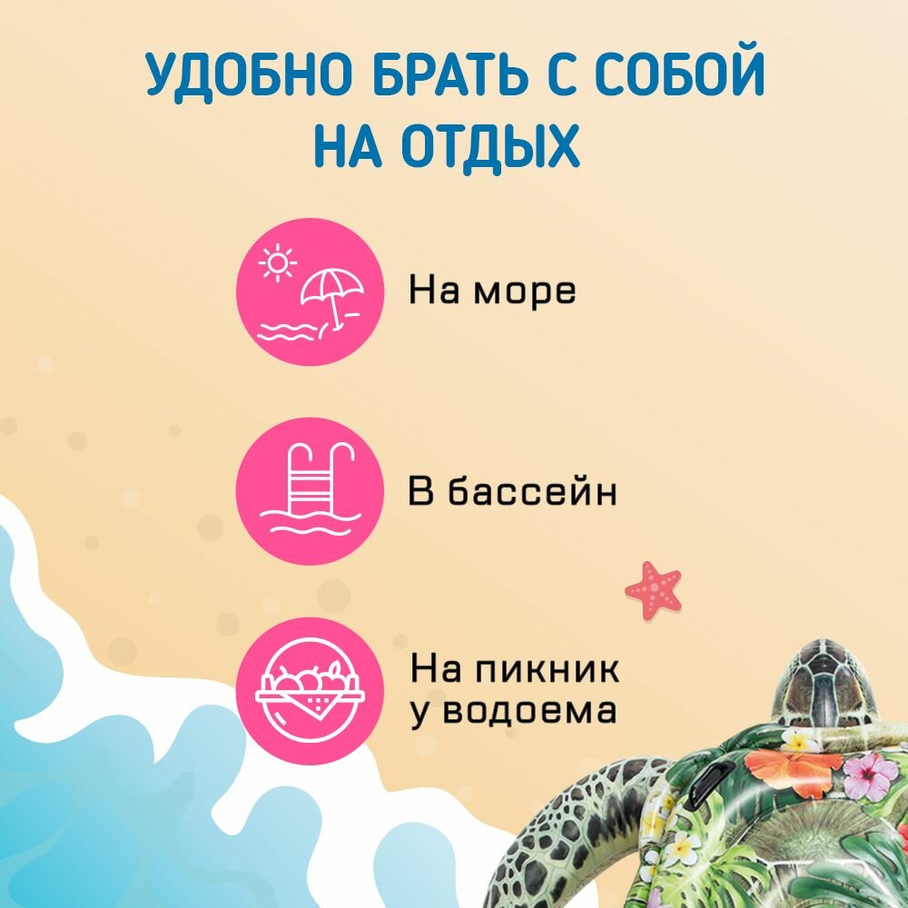 Надувная игрушка для плавания INTEX Большая Морская Черепаха, 191х170см интересное: