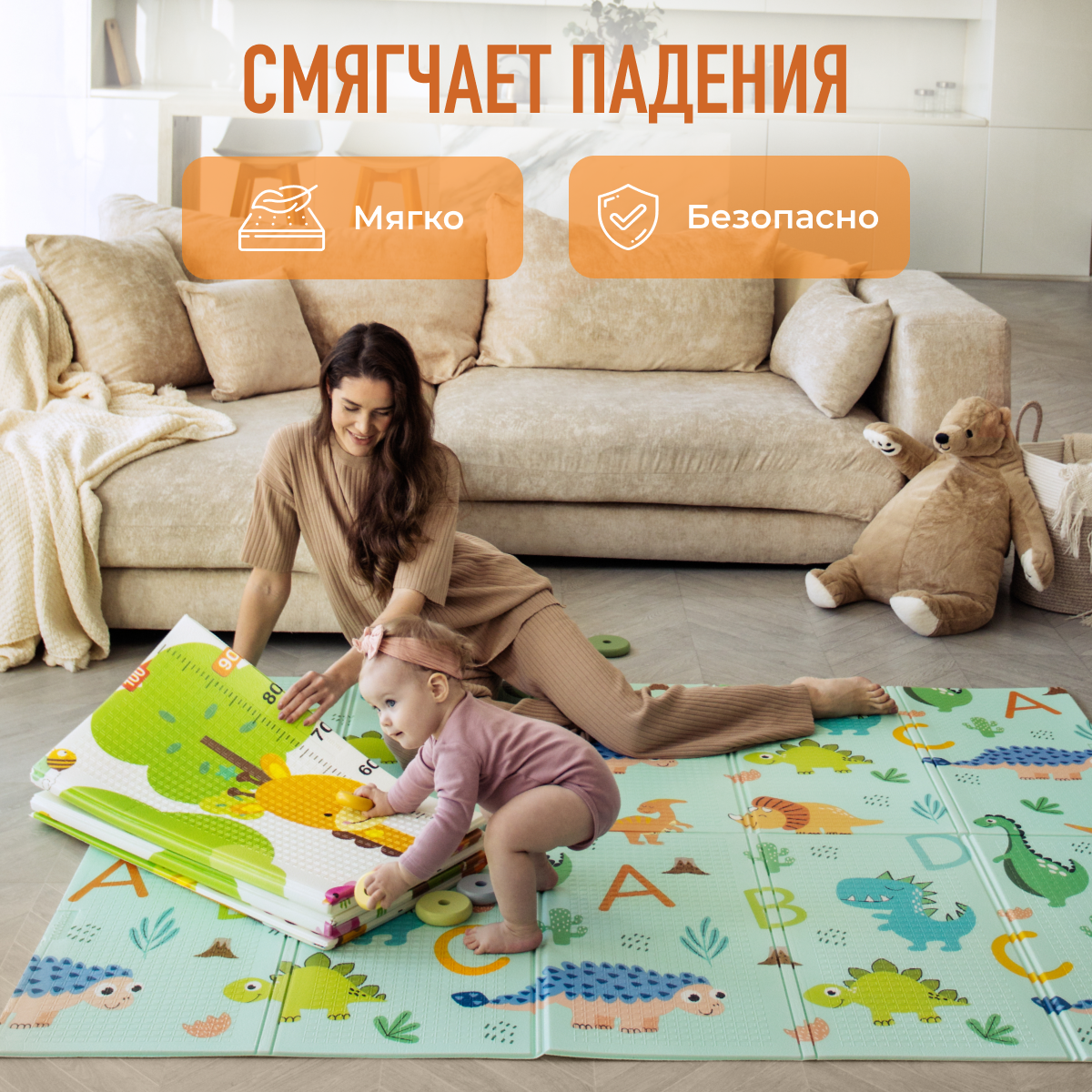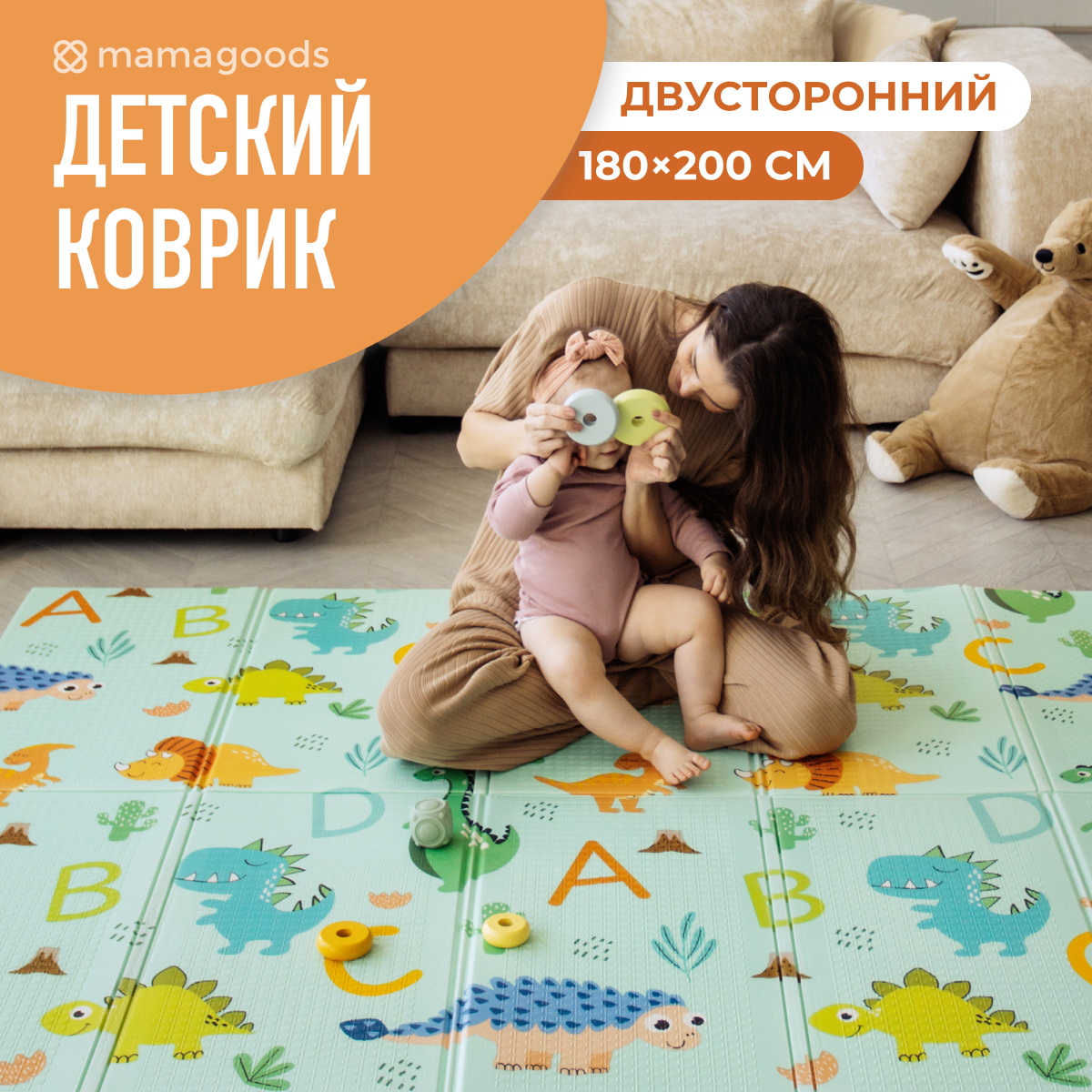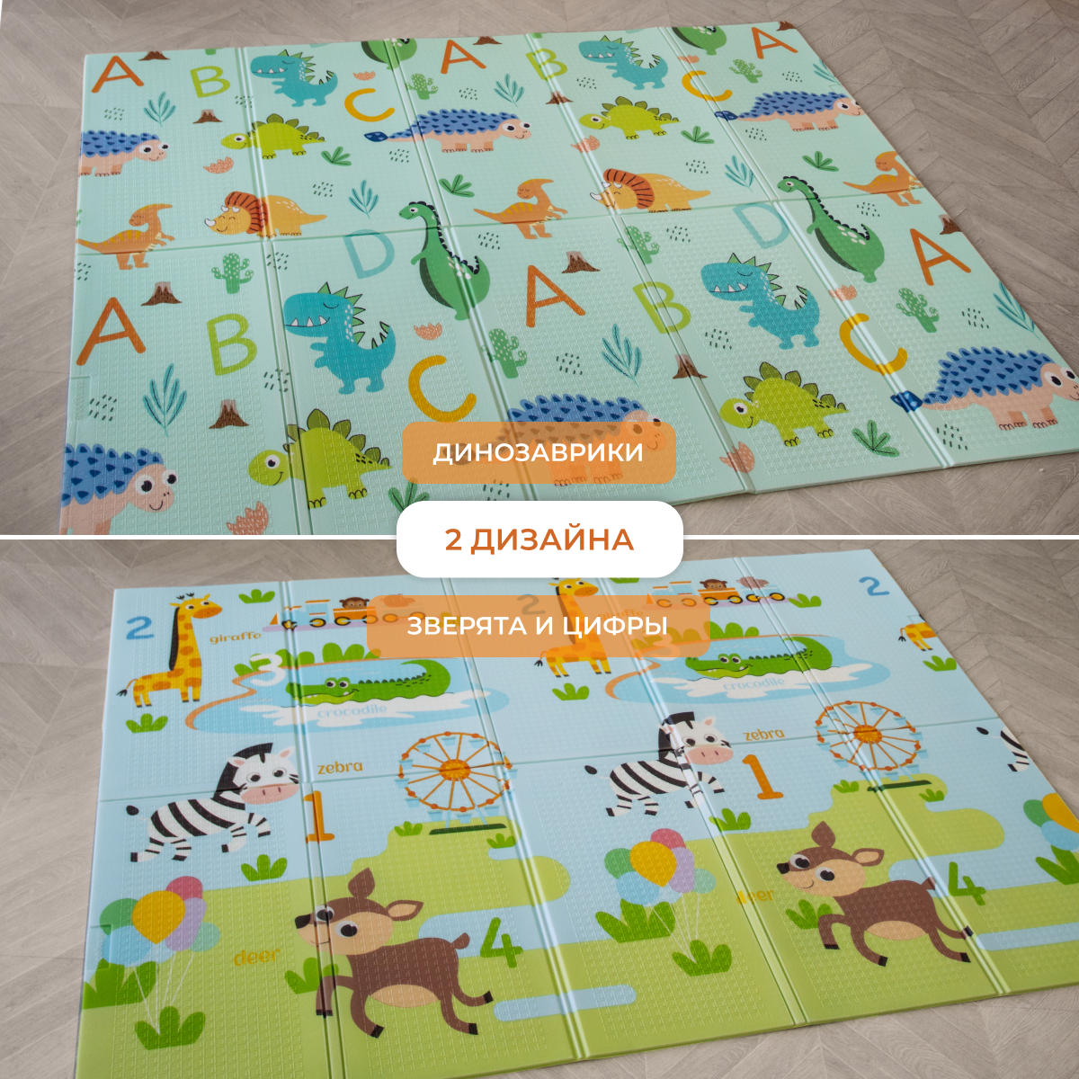 Купить Развивающий коврик детский Mamagoods для ползания складной игровой 180х200 см Динозавры и зоопарк