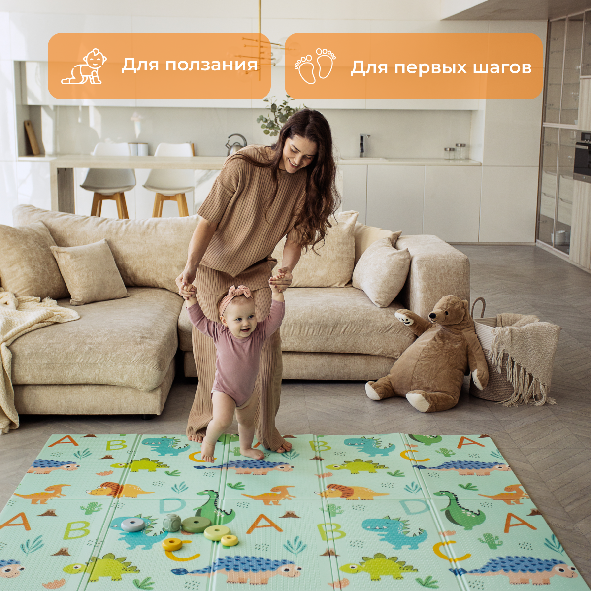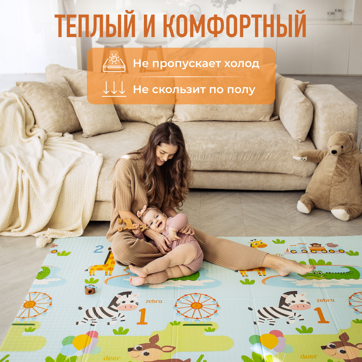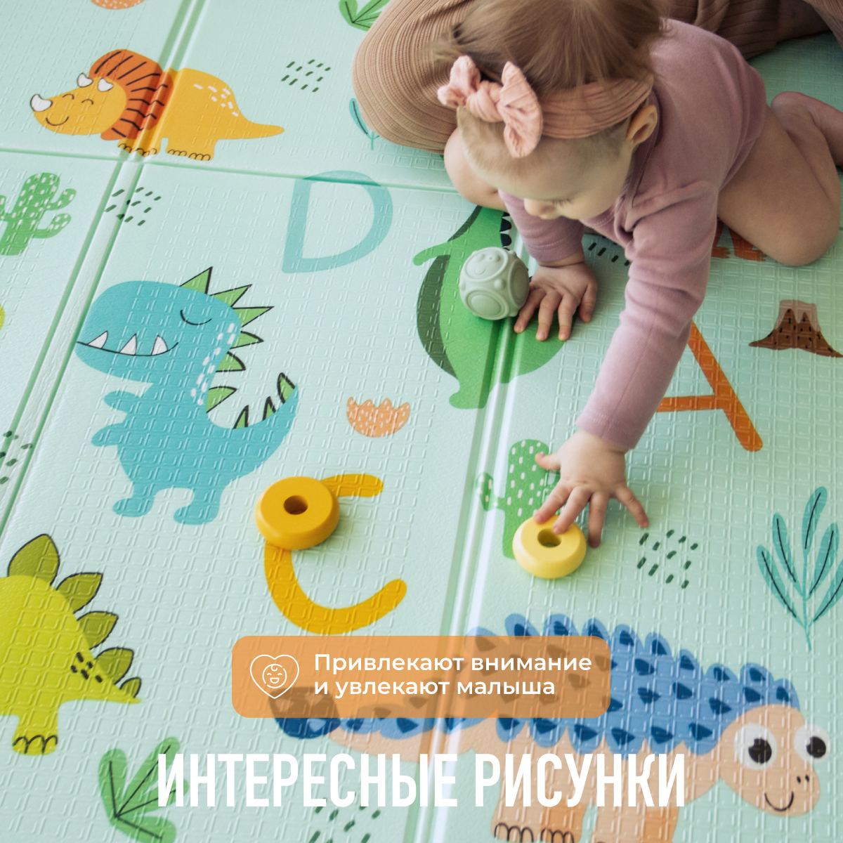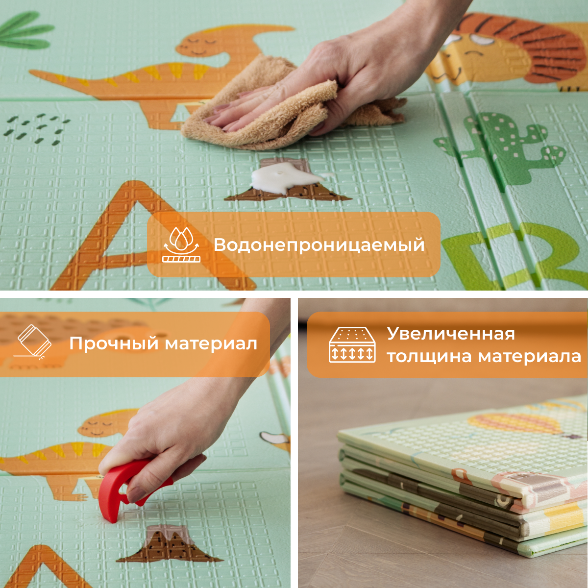 Купить Развивающий коврик детский Mamagoods для ползания складной игровой 180х200 см Динозавры и зоопарк