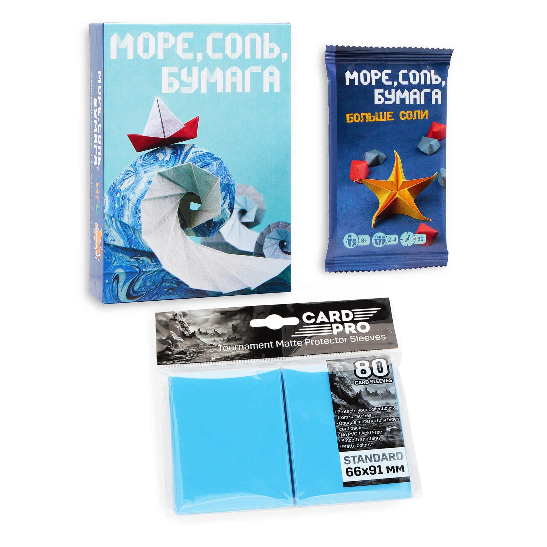 Купить Набор Фабрика Игр: Настольная игра Море, соль, бумага + дополнение Больше соли + Протекторы Card-Pro Синие