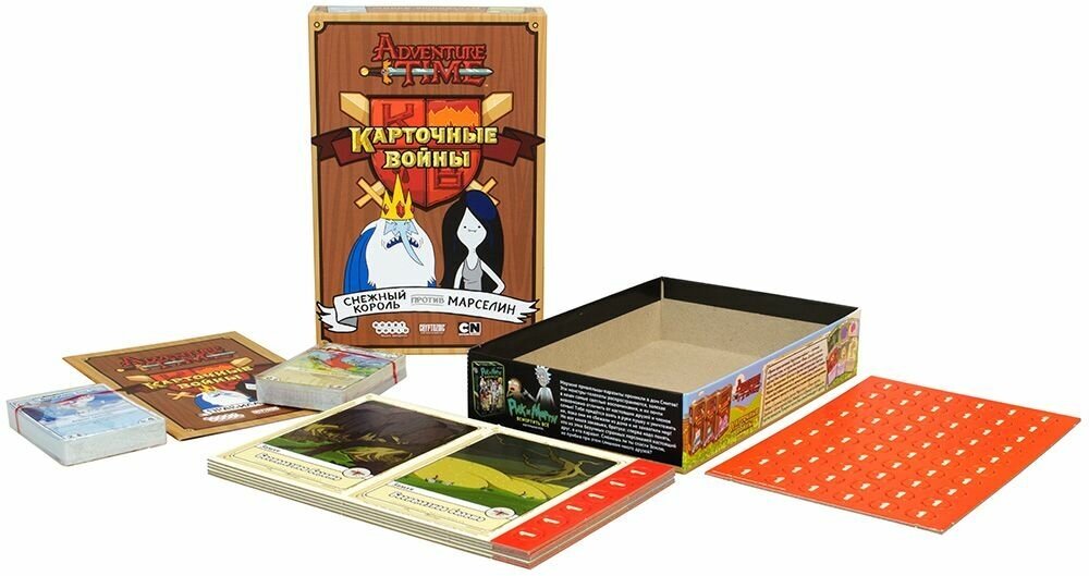 | Дополнительная информация | Игра по мотивам популярного мультипликационного сериала Adventure Time. Её можно смешать с набором «Финн против Джейка» и собрать свою уникальную колоду. |