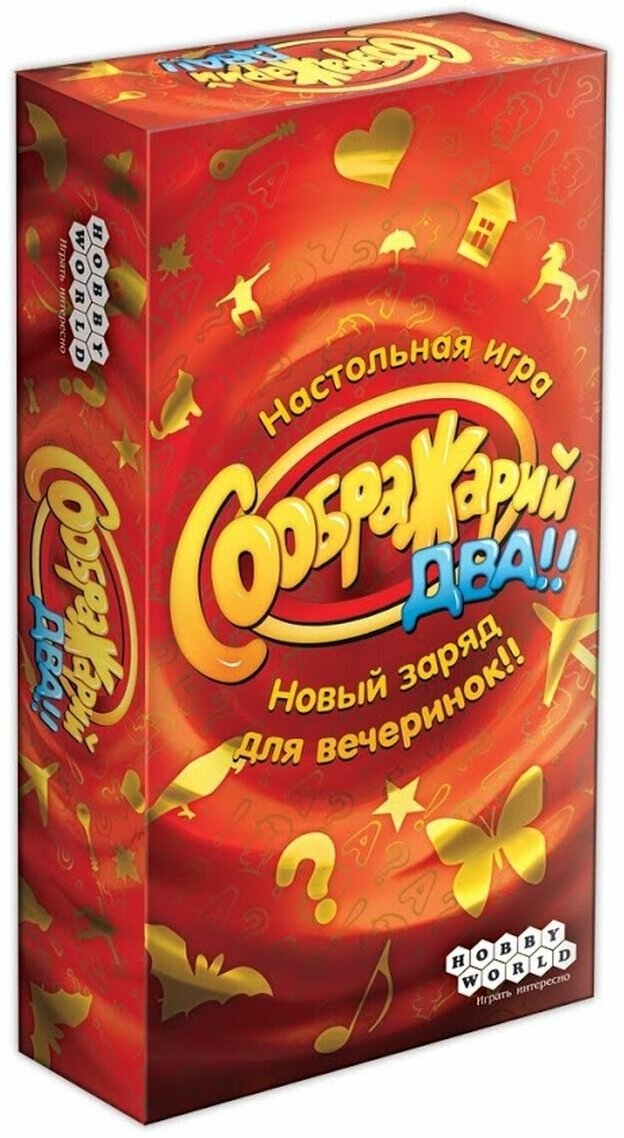 | Дополнительная информация | Элементарные правила позволяют наслаждаться игрой не только взрослым, но и детям. Можно взять с собой в любое путешествие. Карточные колоды второго «Соображария» можно смешать с колодами первой части и сделать партии продолжительнее, а также можно играть по отдельности. |