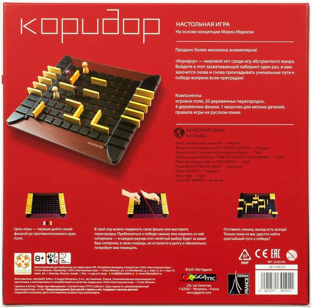 Gigamic Настольная игра "Коридор" ("Quoridor") УТ000000790 интересное: