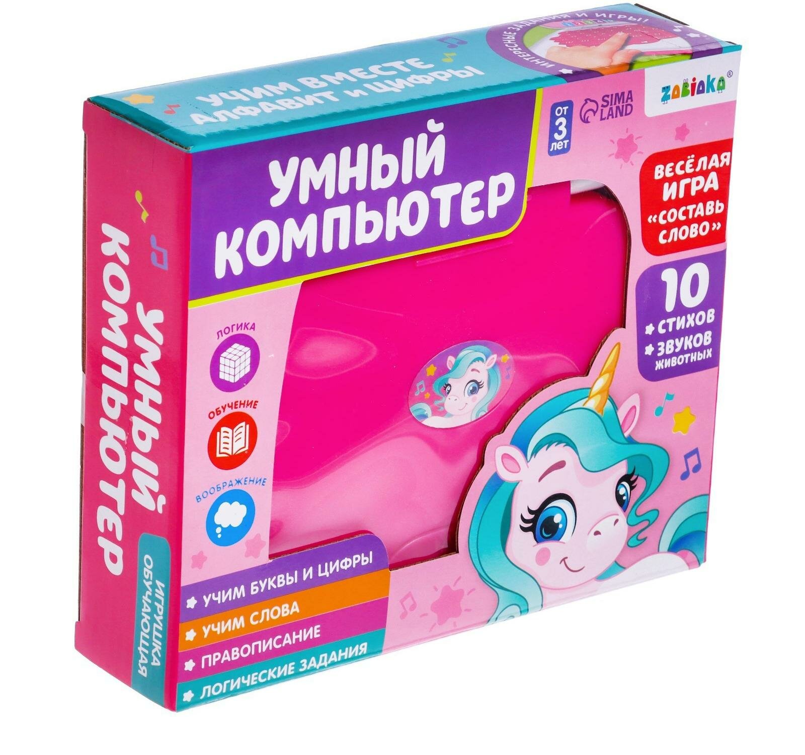 Компьютер обучающий умный компьютер, игра "составь слово", 10 стихов и звуков животных Цвет Голубой ZABIAKA 3984904
