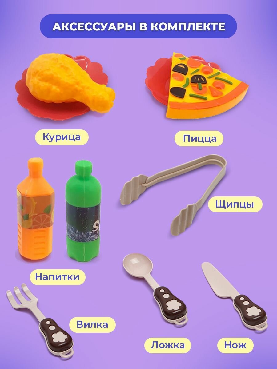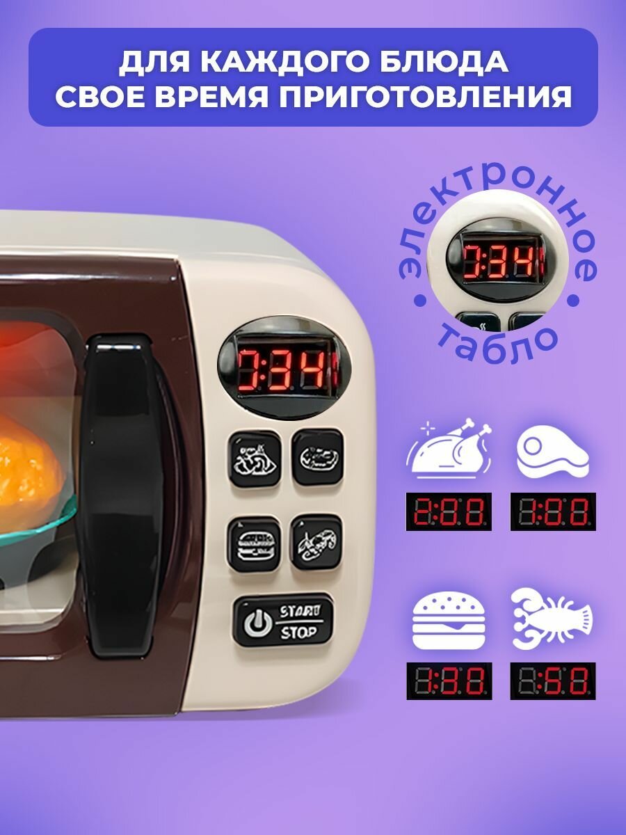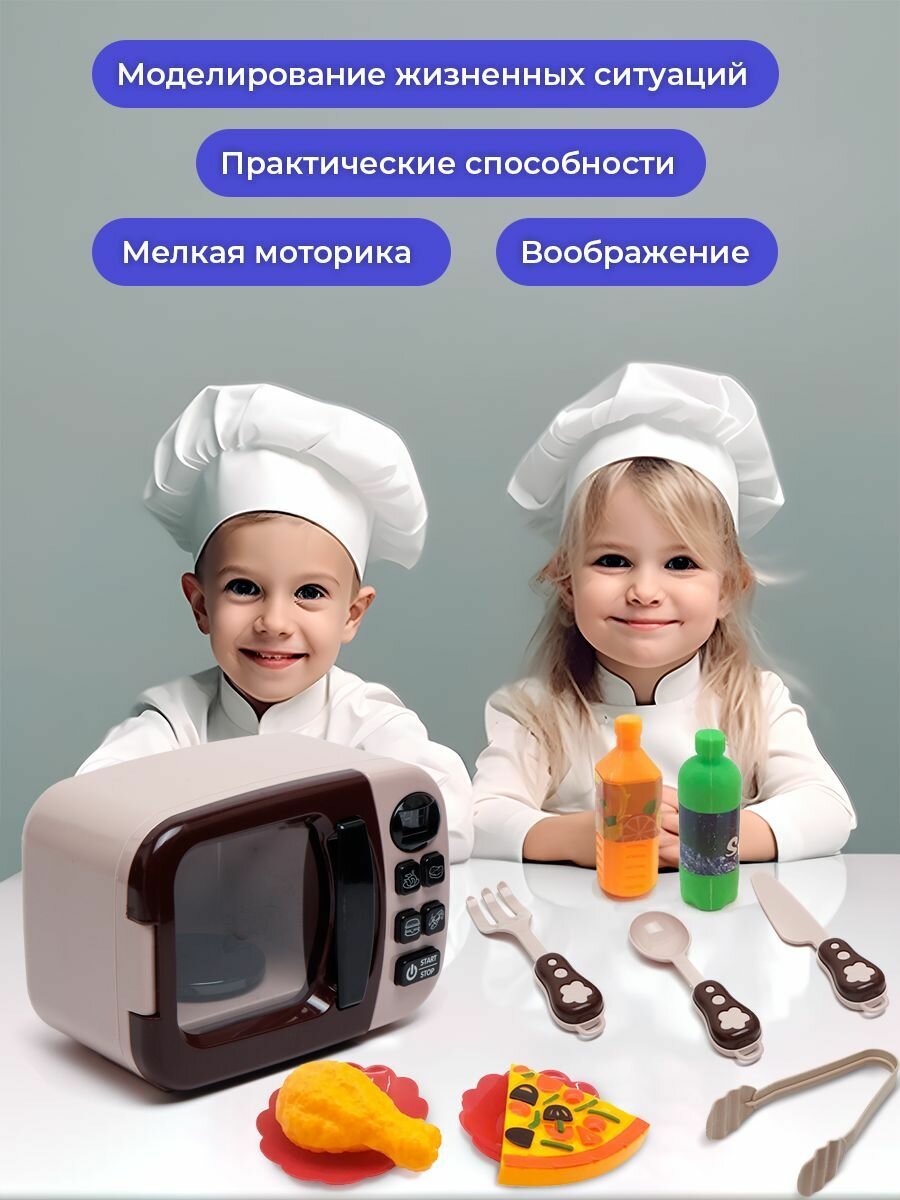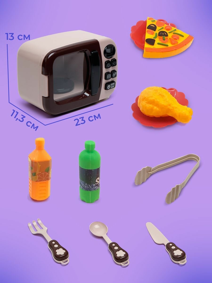 | В комплекте | игрушечная еда, кухонная утварь, микроволновая печь |