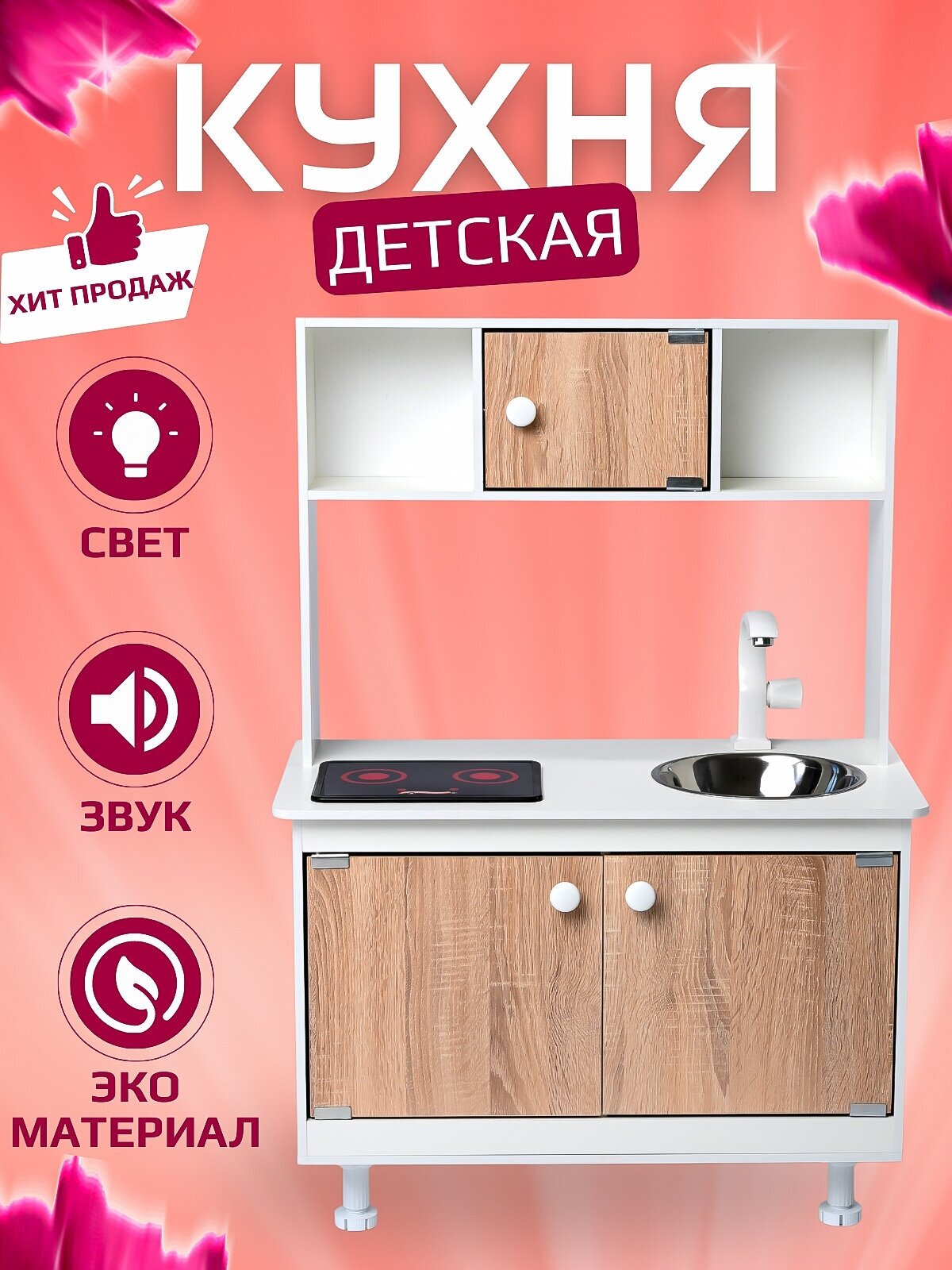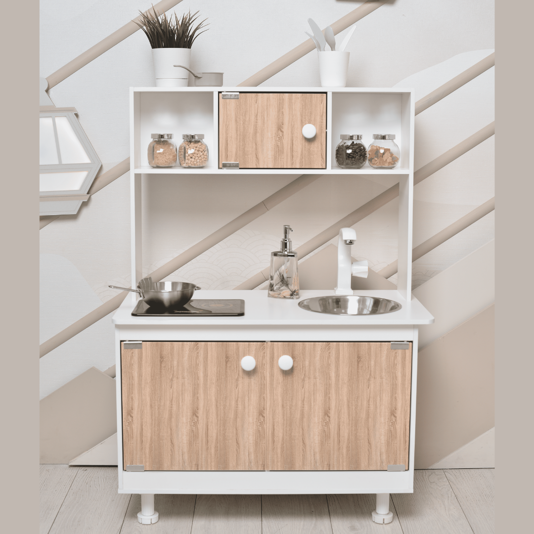 Купить Детская кухня SITSTEP с интерактивной плитой (со звуком и светом), фасады дуб сонома
