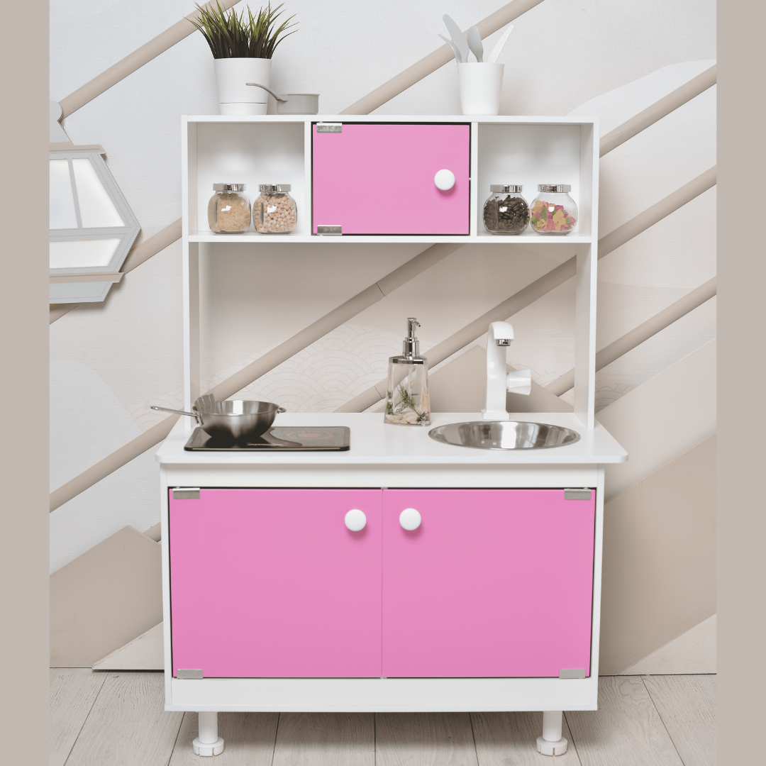 Детская кухня SITSTEP с интерактивной плитой (со звуком и светом) розовые фасады