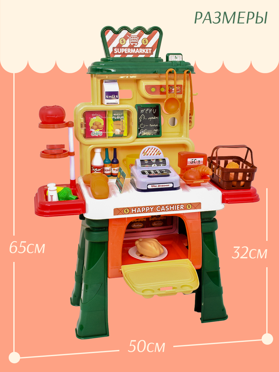 Купить Детский магазин с кассой и сканером и корзинкой