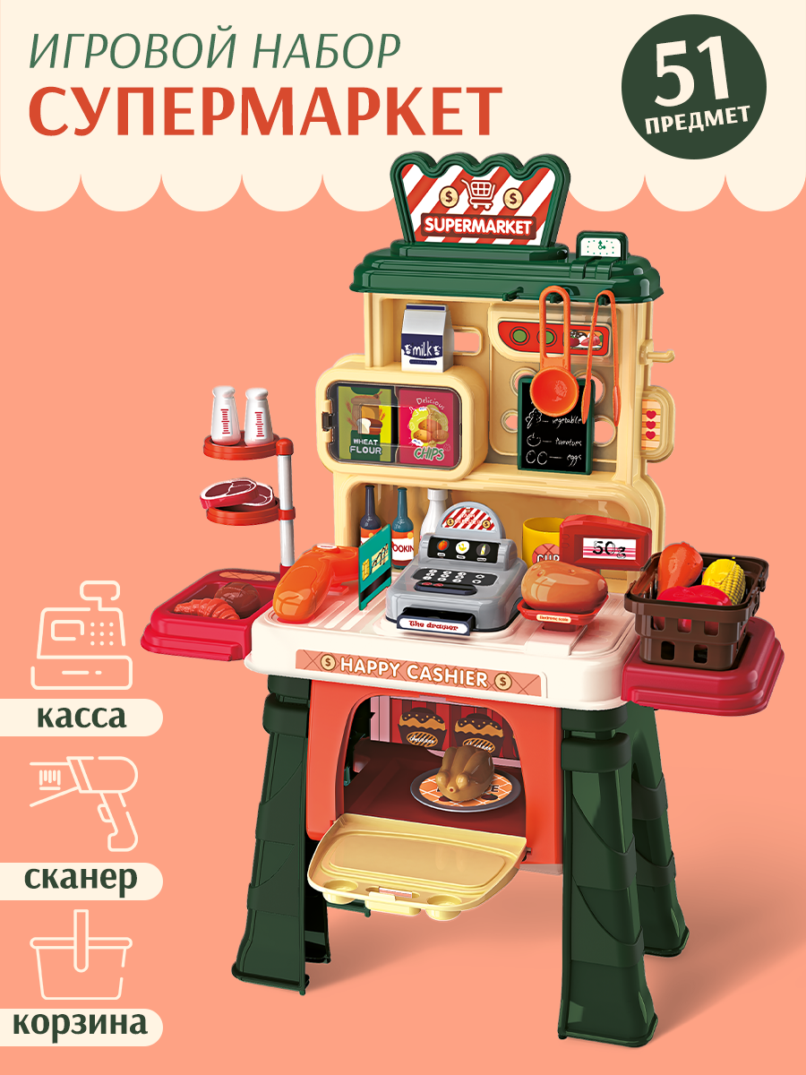 Игровой набор детский/ Магазин со сканером, кассой, корзиной / Супермаркет, 51 предмет