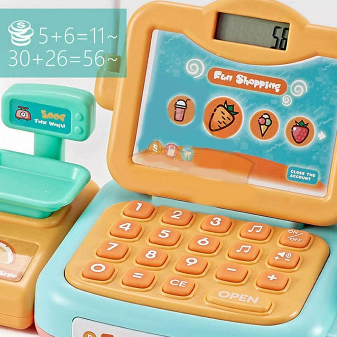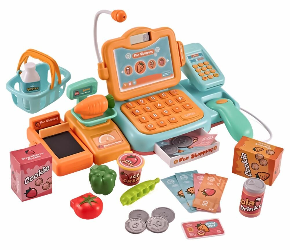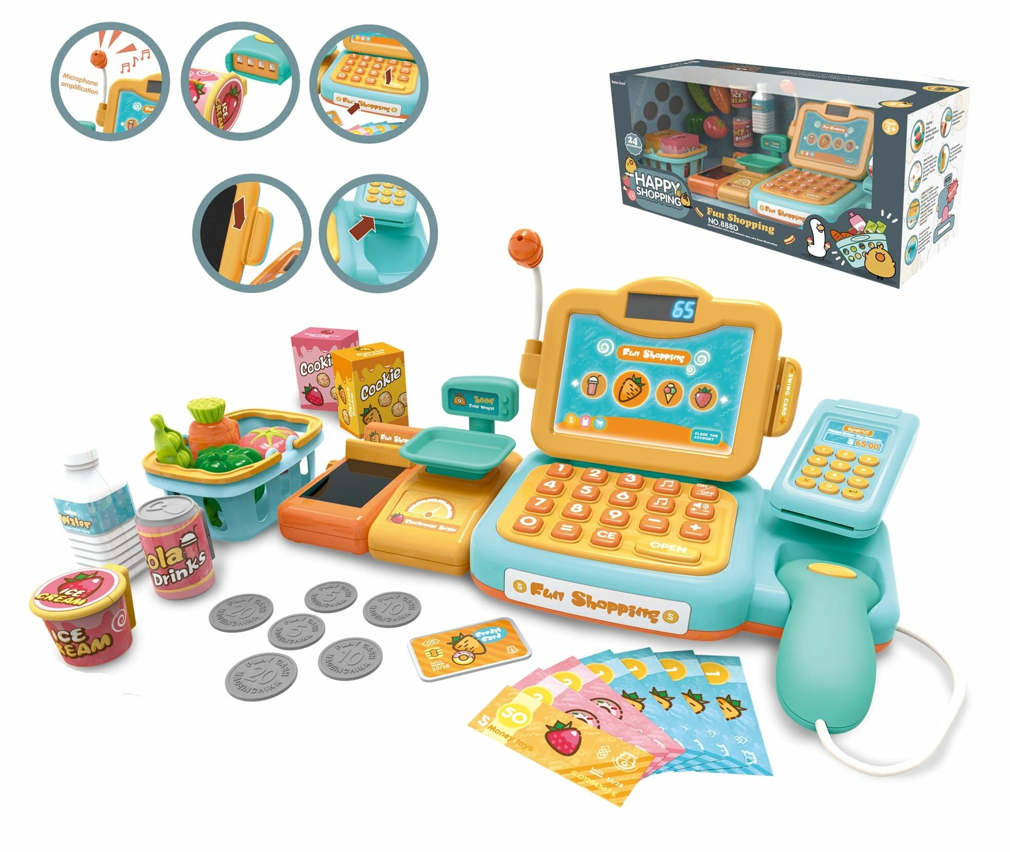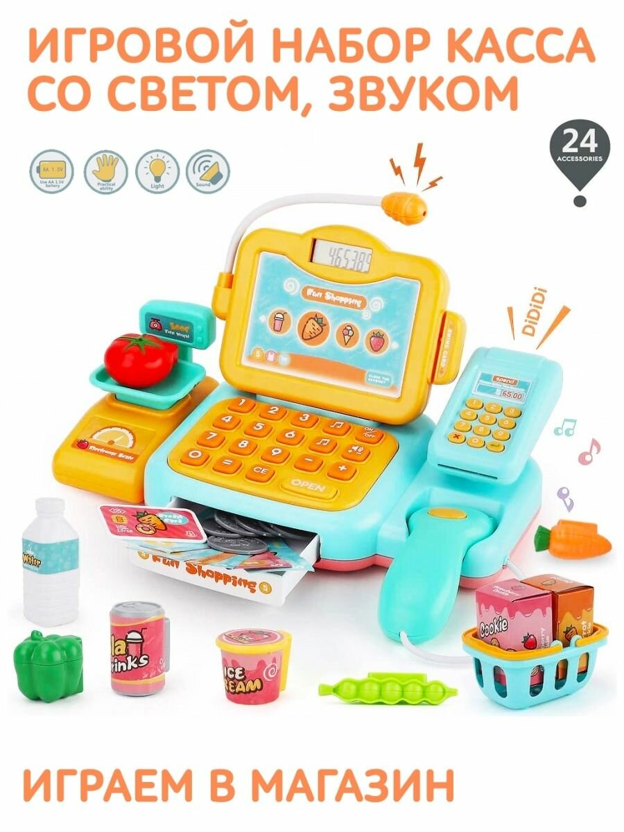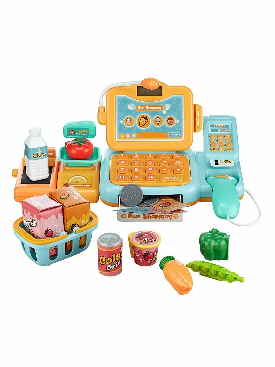 Купить Игровой набор Happy Shopping Кассовый аппарат 24 предметов, сканер, весы, кассовая лента, 25 мелодий, подсветка, 888F