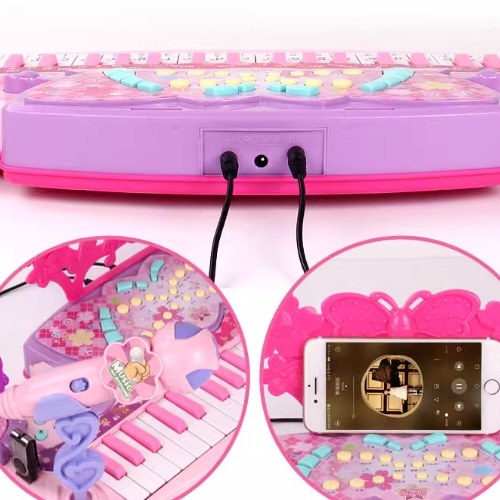 Купить Детский музыкальный электронный инструмент пианино синтезатор с микрофоном и стулом от сети и от батареек, выход для наушников