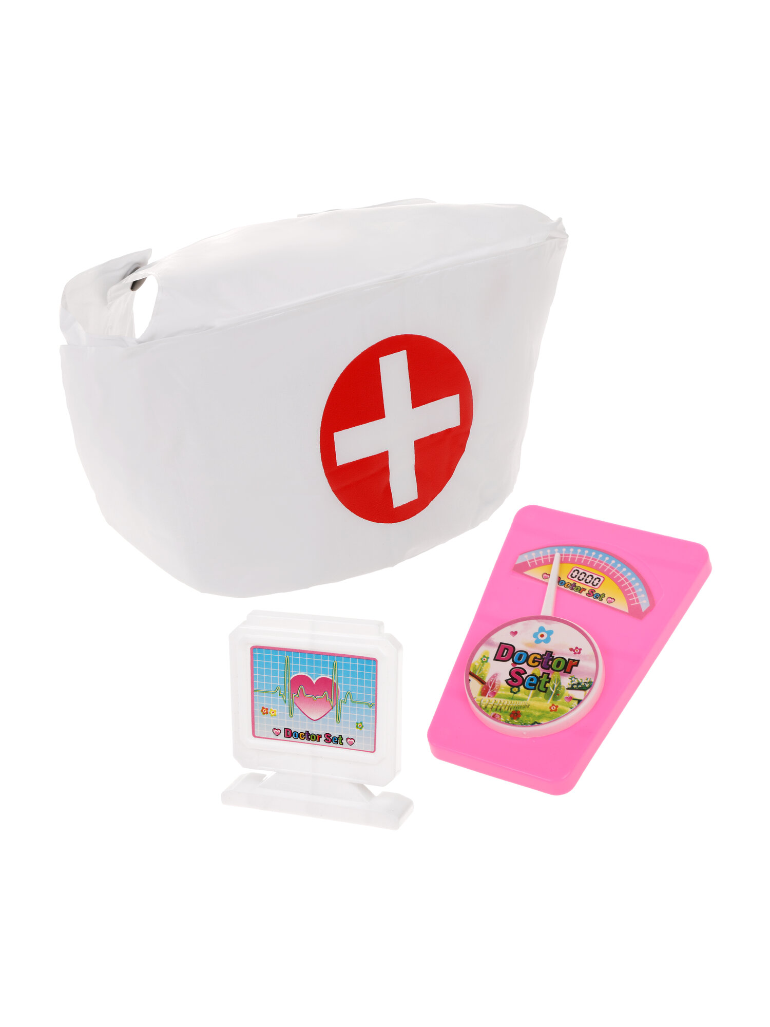 | Комплектация | фонендоскоп, ножницы, шприц, ложечка, пробирка, 2 баночки, монитор, весы, бейджик, шапочка доктора |