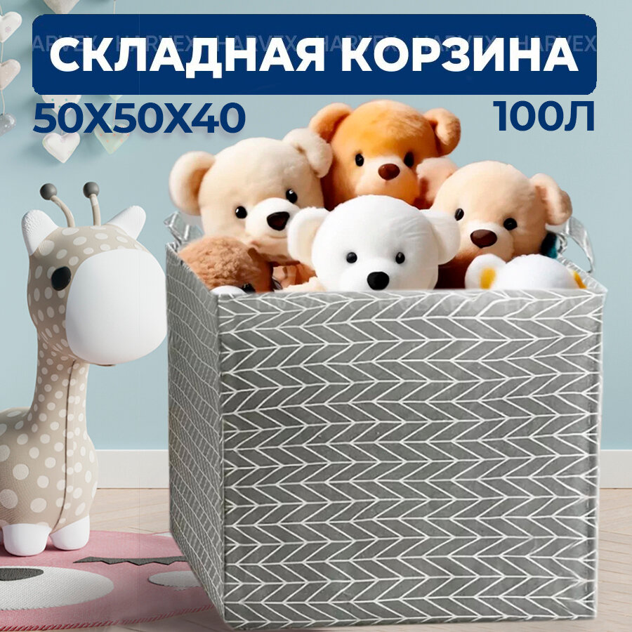 Корзина для игрушек и белья большая складная 50×50×40 HARVEX интересное: