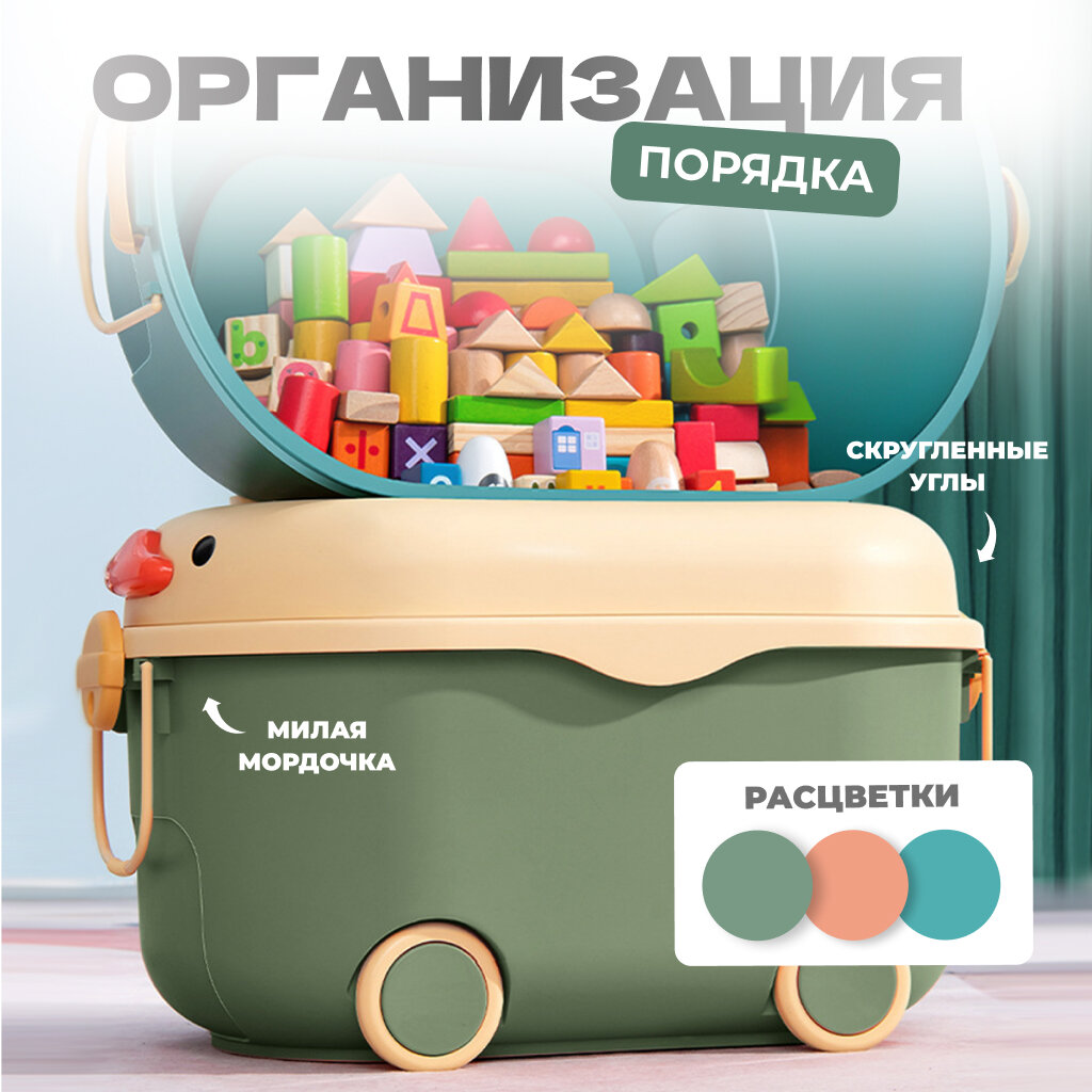Ящик для хранения игрушек Solmax на колесах зеленый интересное: