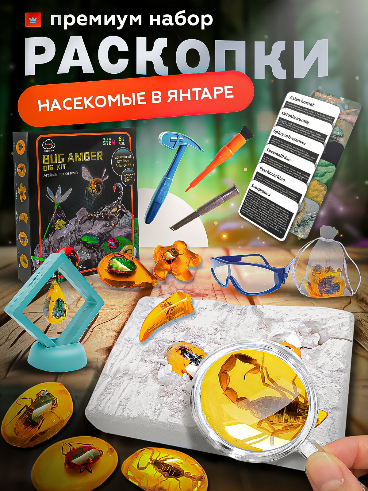 Купить Археологический набор раскопки насекомых в янтаре, опыты и эксперименты для детей