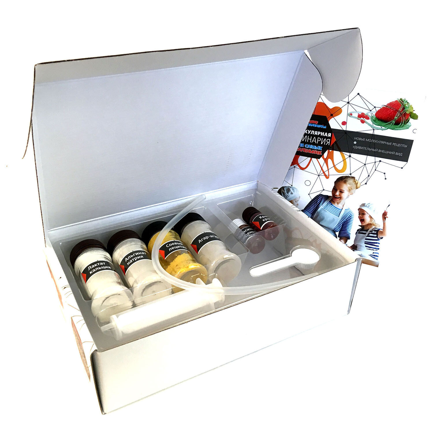 | Комплектация | Агар-агар (20г), соевый лецитин (30г), альгинат натрия (20г), лактат кальция (50г), красители пищевые (2 шт), мерная ложка сферическая 5 мл (2 шт), пластиковый шприц (2 шт), пакетики для изготовления льда (2-3 шт), силиконовая трубочка (1 шт), перчатки (1 пара) |