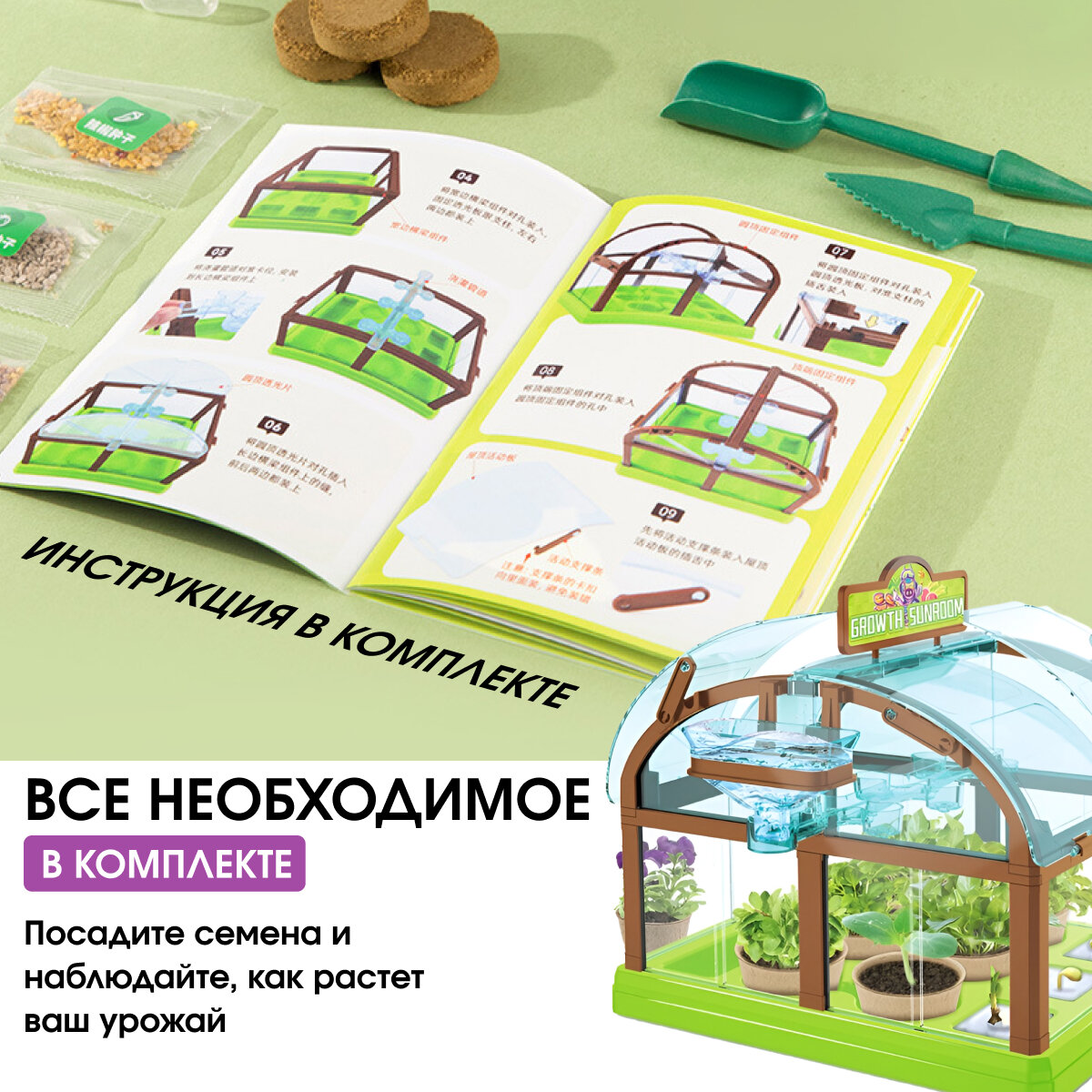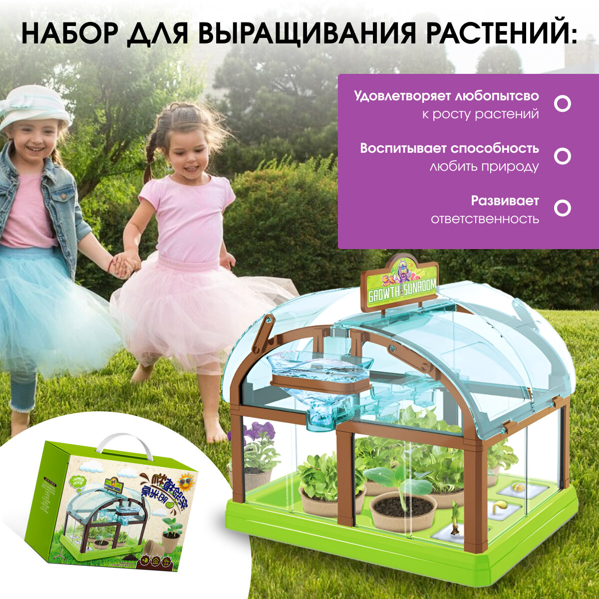 Купить Детская игрушка Теплица, набор для садоводства с системой полива, юный садовод, Zur-Kibet