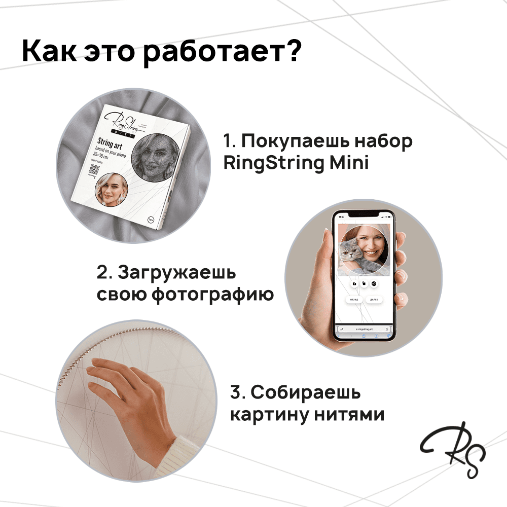 Набор для создания картины нитью из любой фотографии RingString mini интересное:
