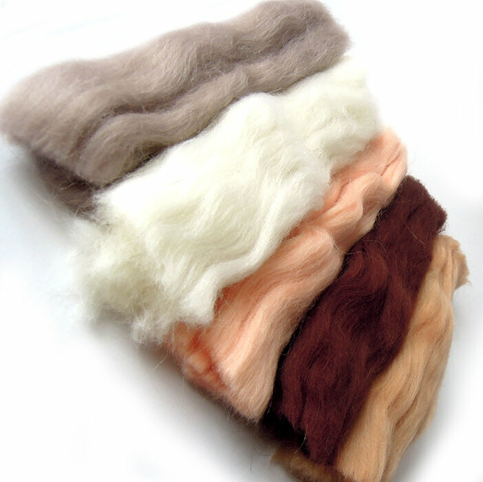 Шерсть для валяния Теплый Кашемир, состав шерсть 100 %, набор 6 цветов