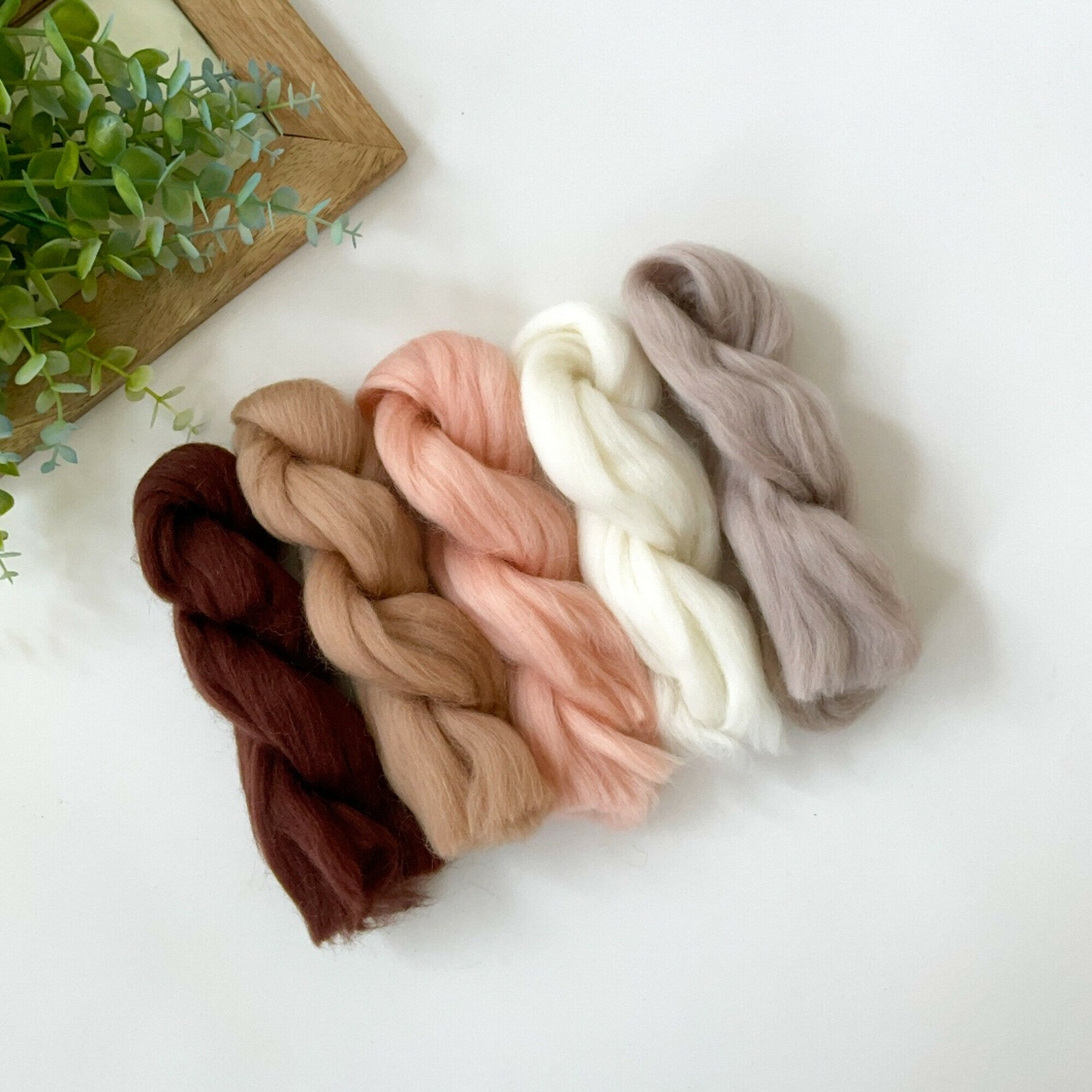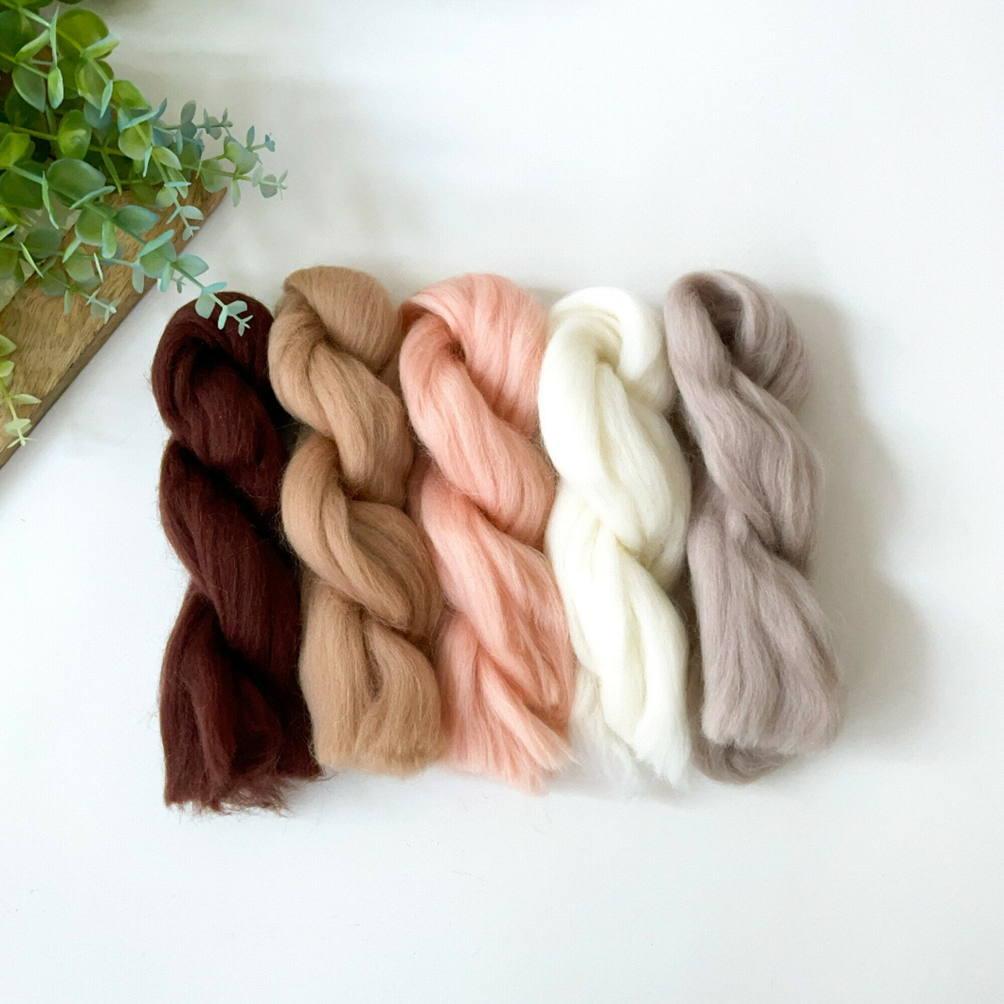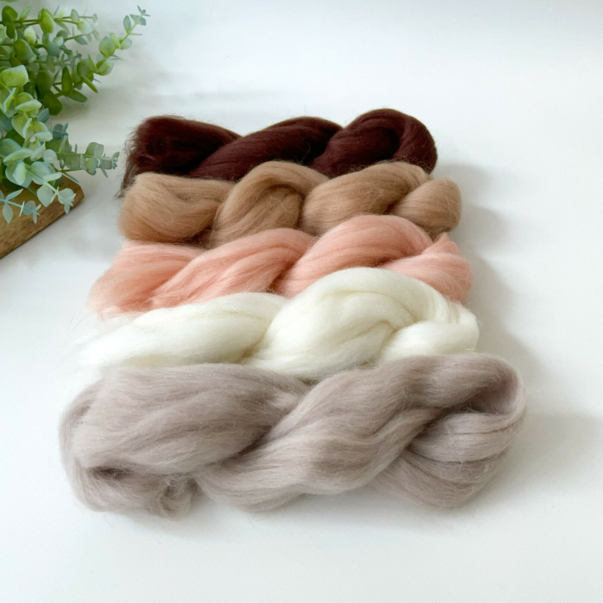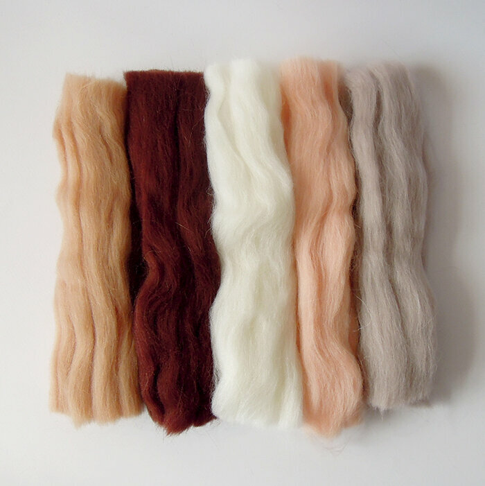 Шерсть для валяния, Ванильный микс, полутонкая шерсть 100 %, набор 5 цветов, 50 г
