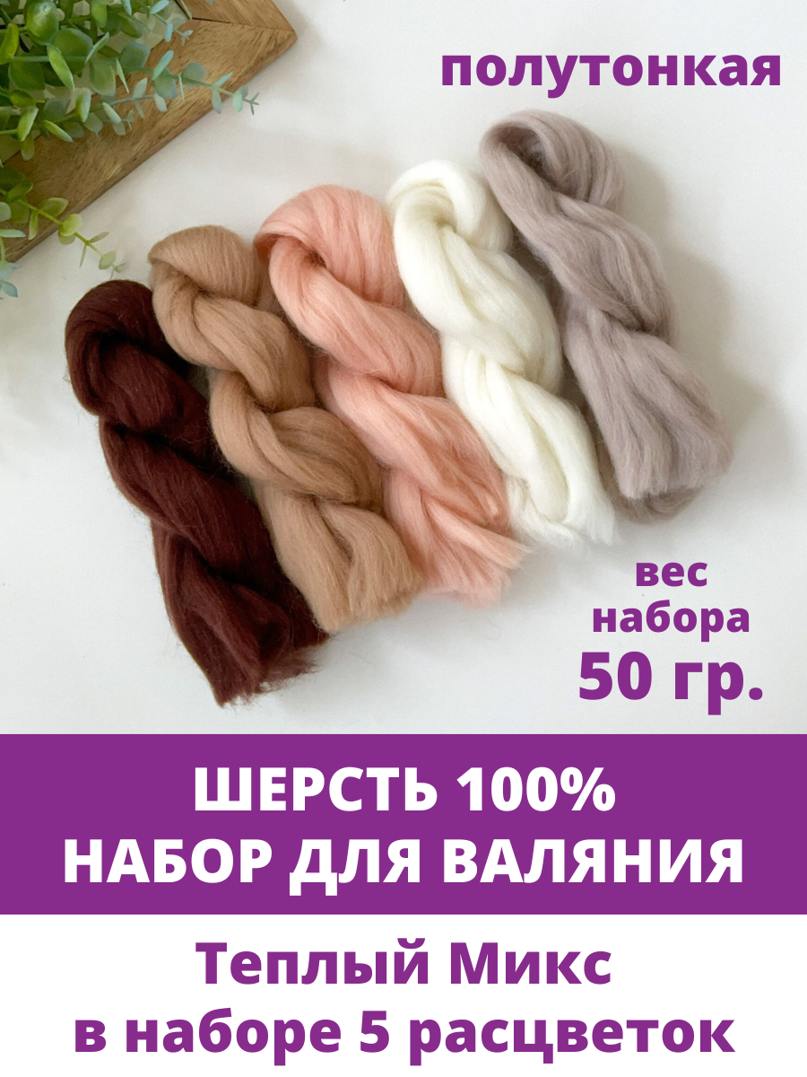 Купить Шерсть для валяния Теплый Микс, состав шерсть 100 %, набор 5 цветов