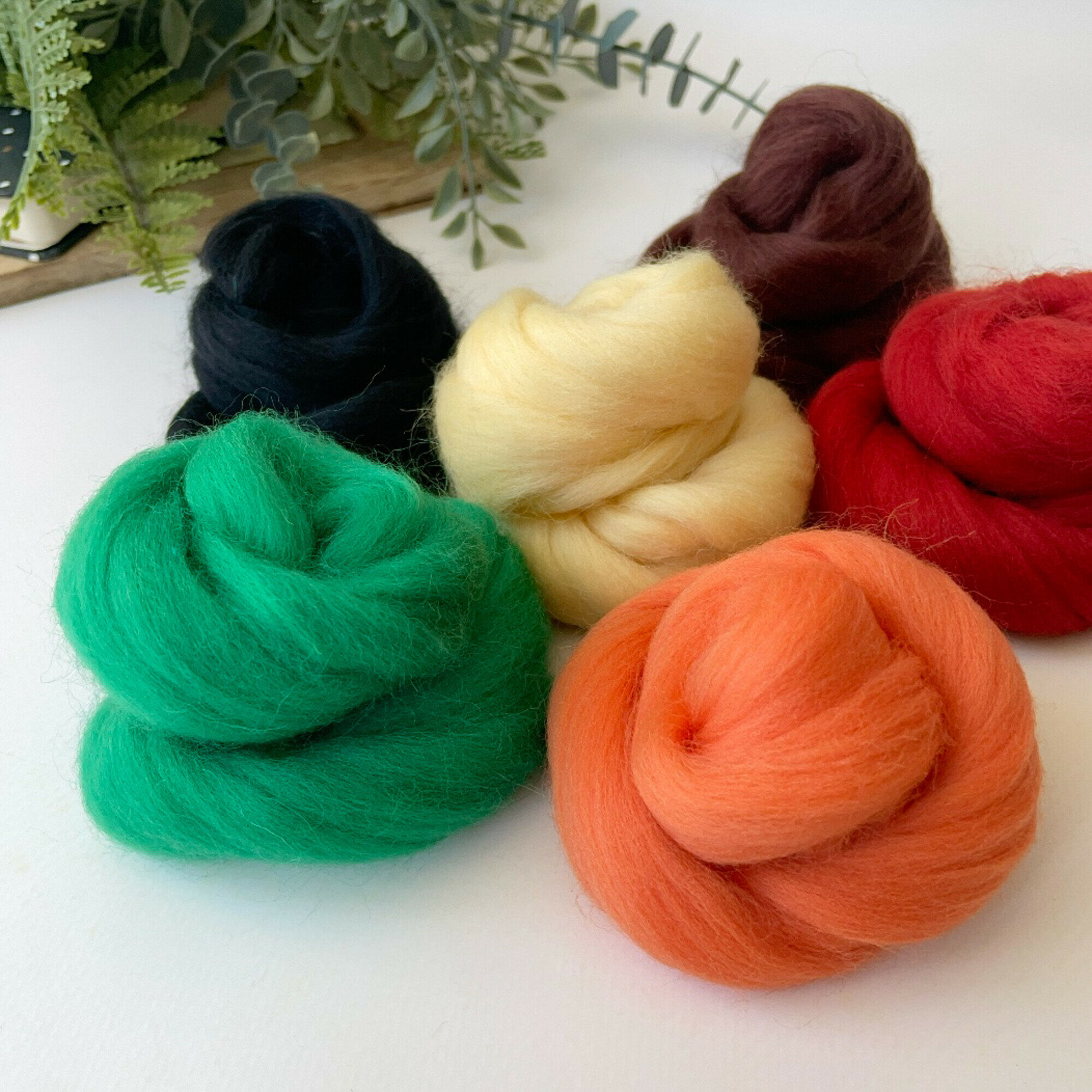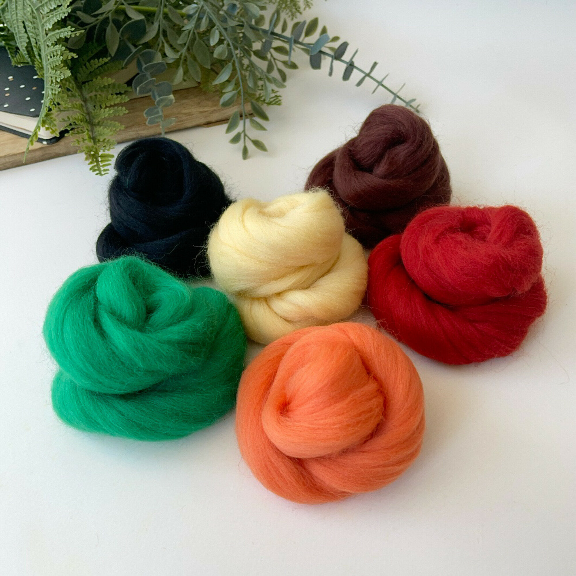 Шерсть для валяния, микс Теплая осень, полутонкая шерсть 100 %, набор 6 цветов, 50 г