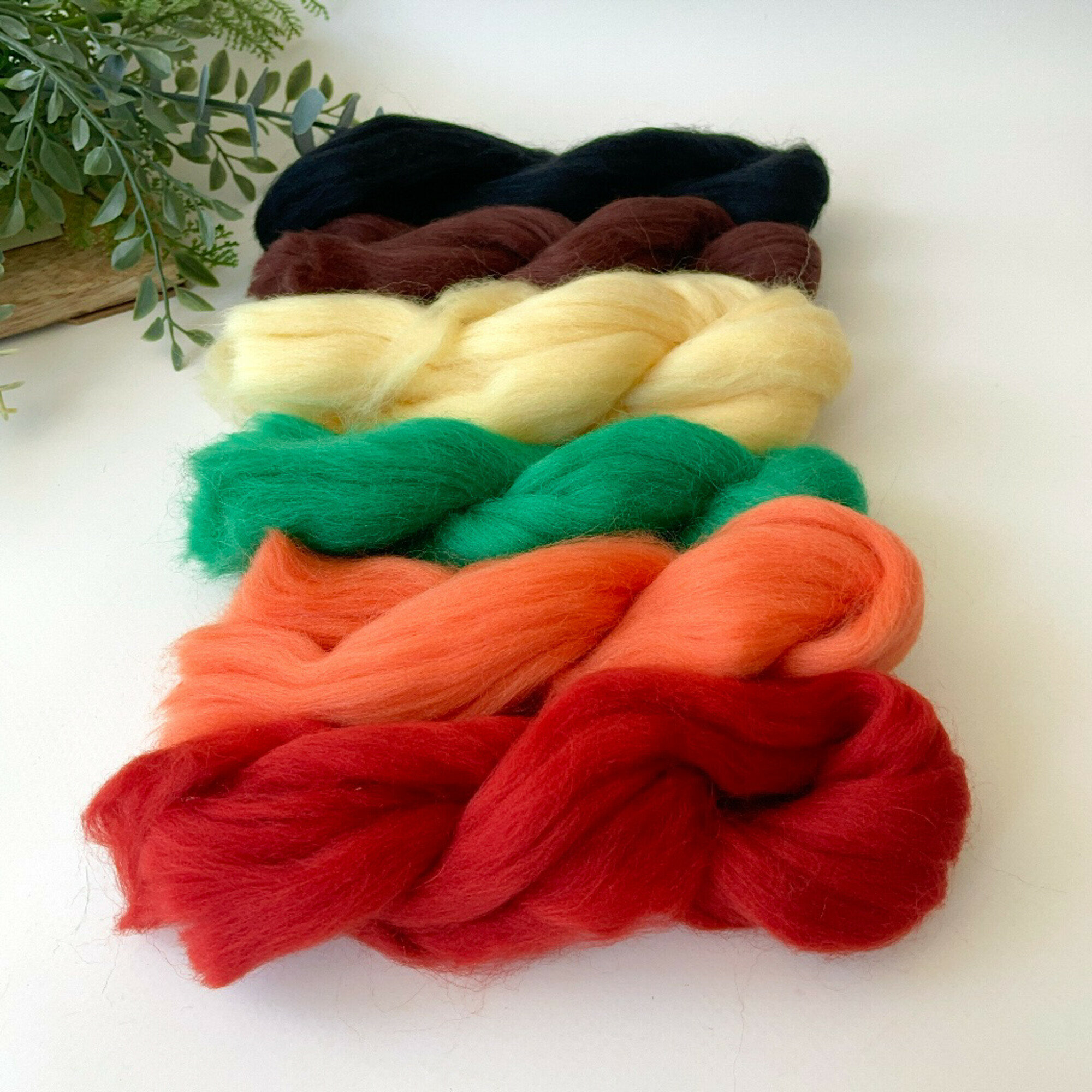 Шерсть для валяния, Яркая осень, полутонкая шерсть 100 %, набор 6 цветов, 50 г