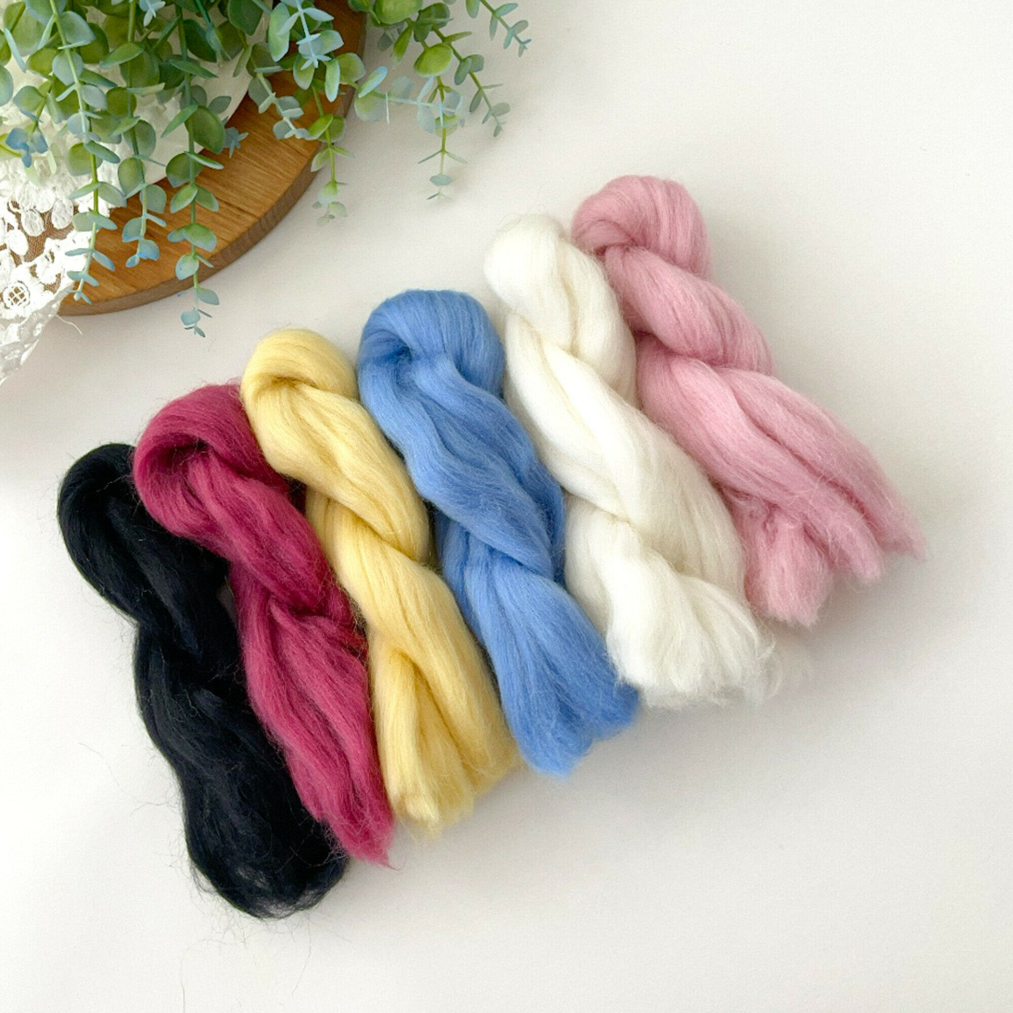 Шерсть для валяния, Нежная свежесть, состав шерсть 100 %, набор 6 цветов