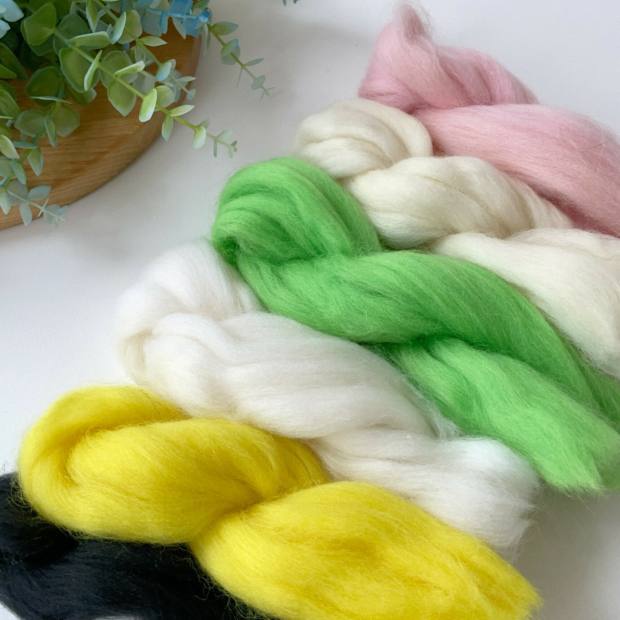 Шерсть для валяния, микс Весна, полутонкая шерсть 100 %, набор 6 цветов, 50 г