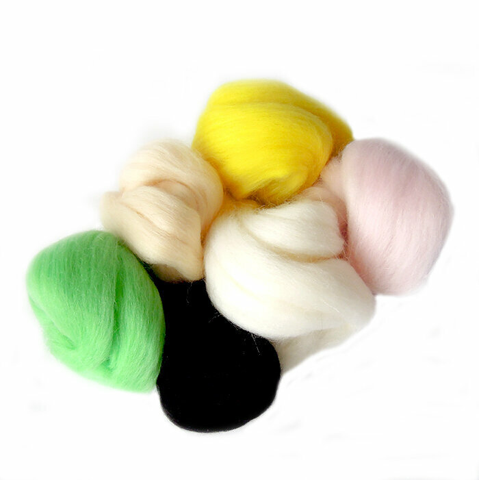 Шерсть для валяния, состав шерсть 100%, 50 гр., набор 6 цветов - нежные цвета