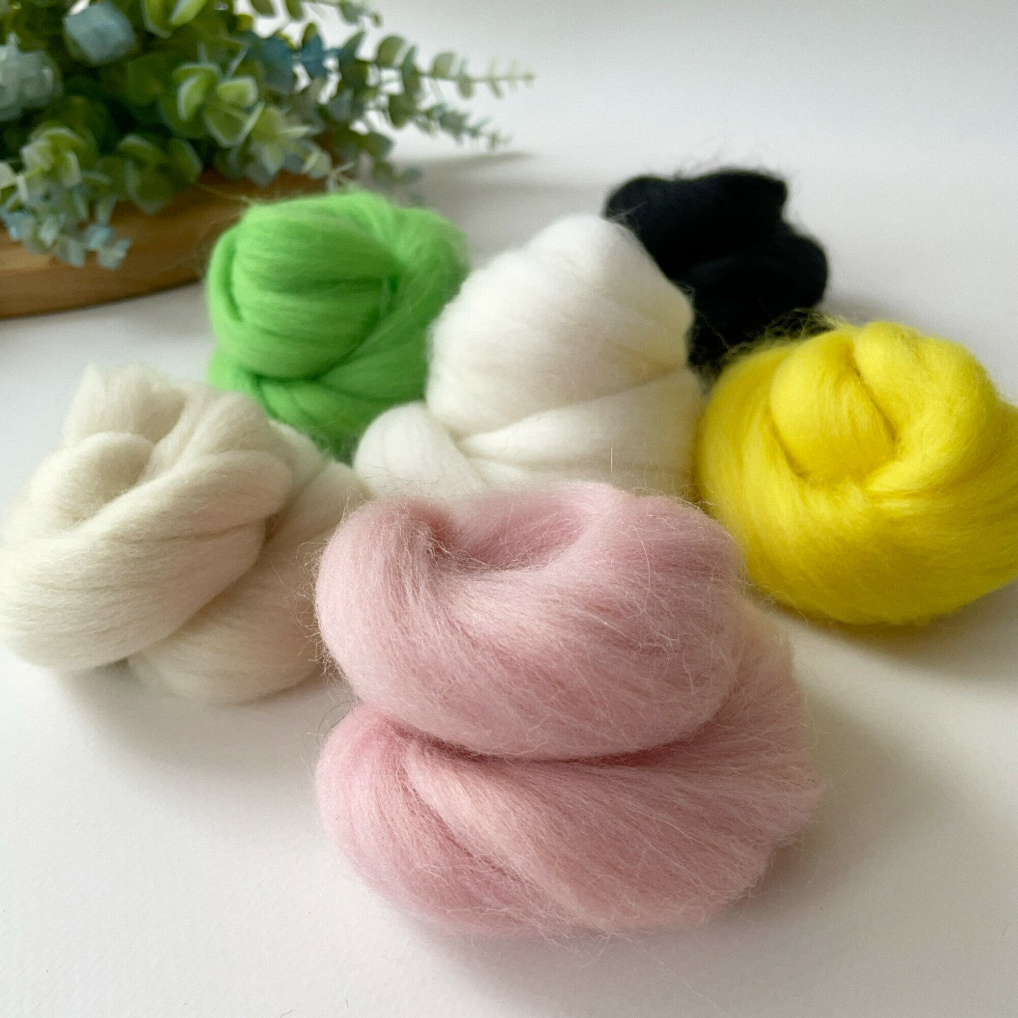 Шерсть для валяния, состав шерсть 100%, 50 гр, набор 6 цветов - нежные цвета