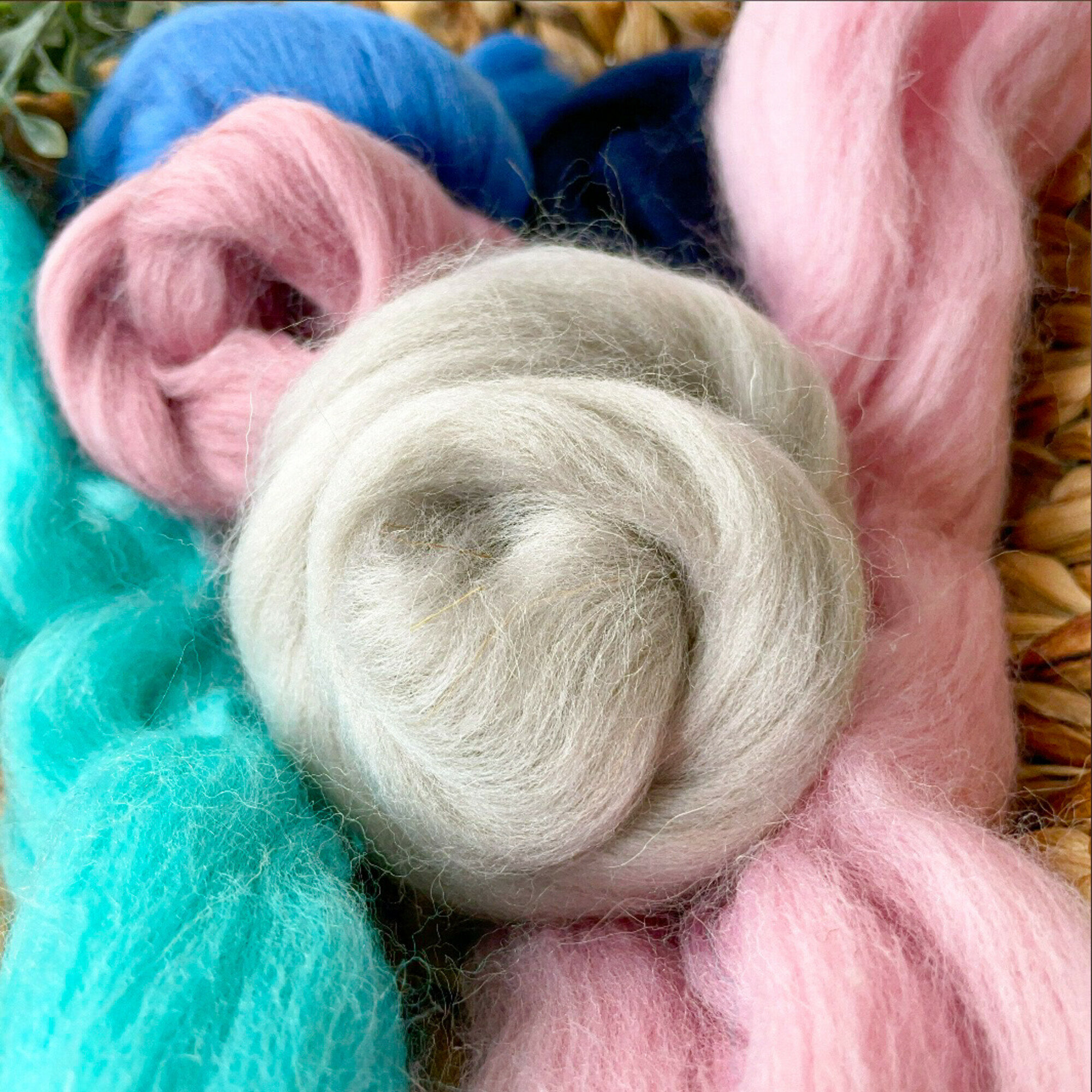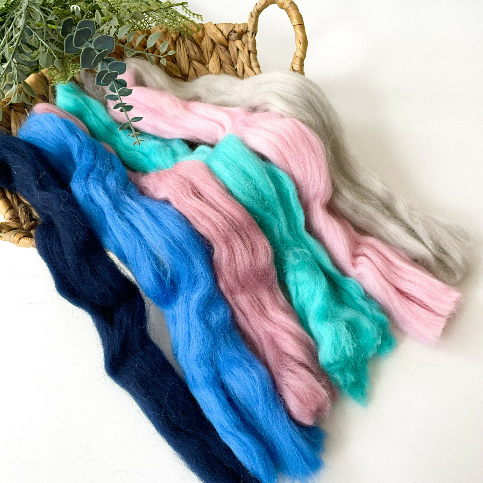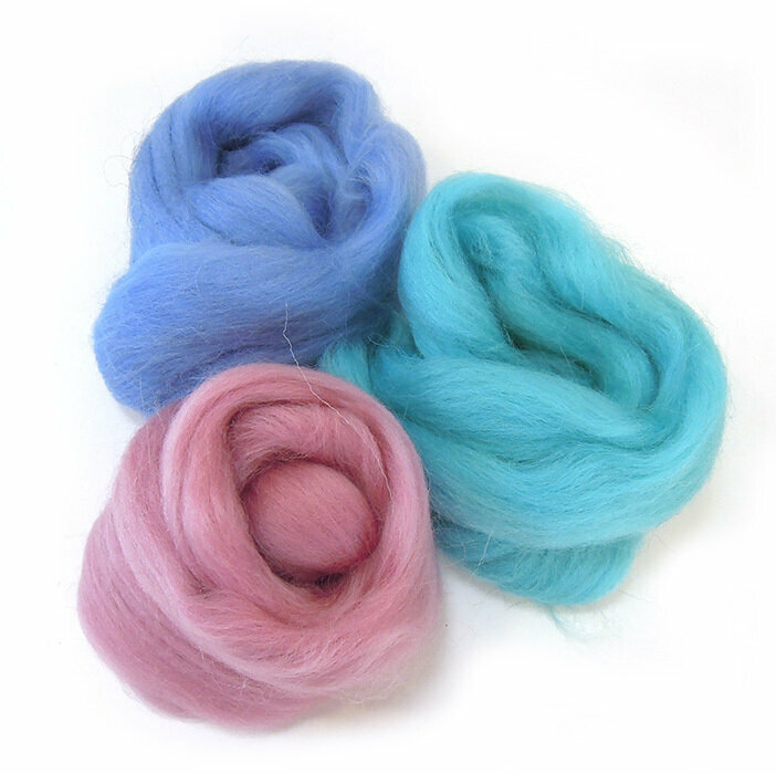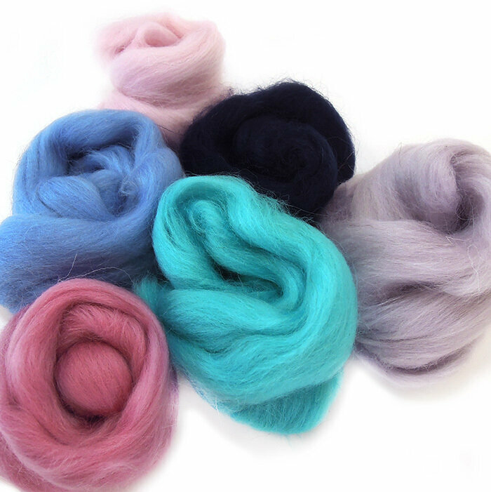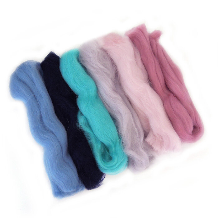 Шерсть для валяния, вишнево-лазурный микс, полутонкая шерсть 100 %, набор 6 цветов, 50 г