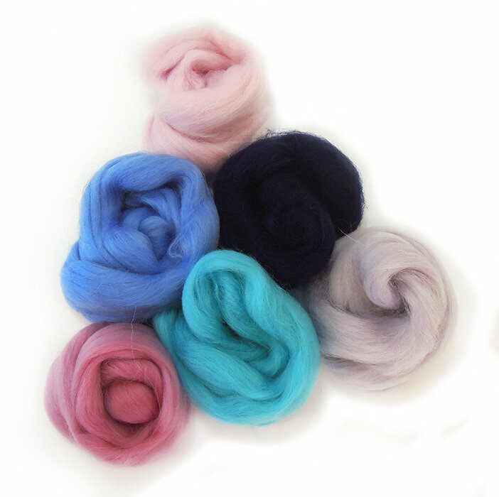 Шерсть для валяния Голубая Лазурь, состав шерсть 100 %, набор 6 цветов