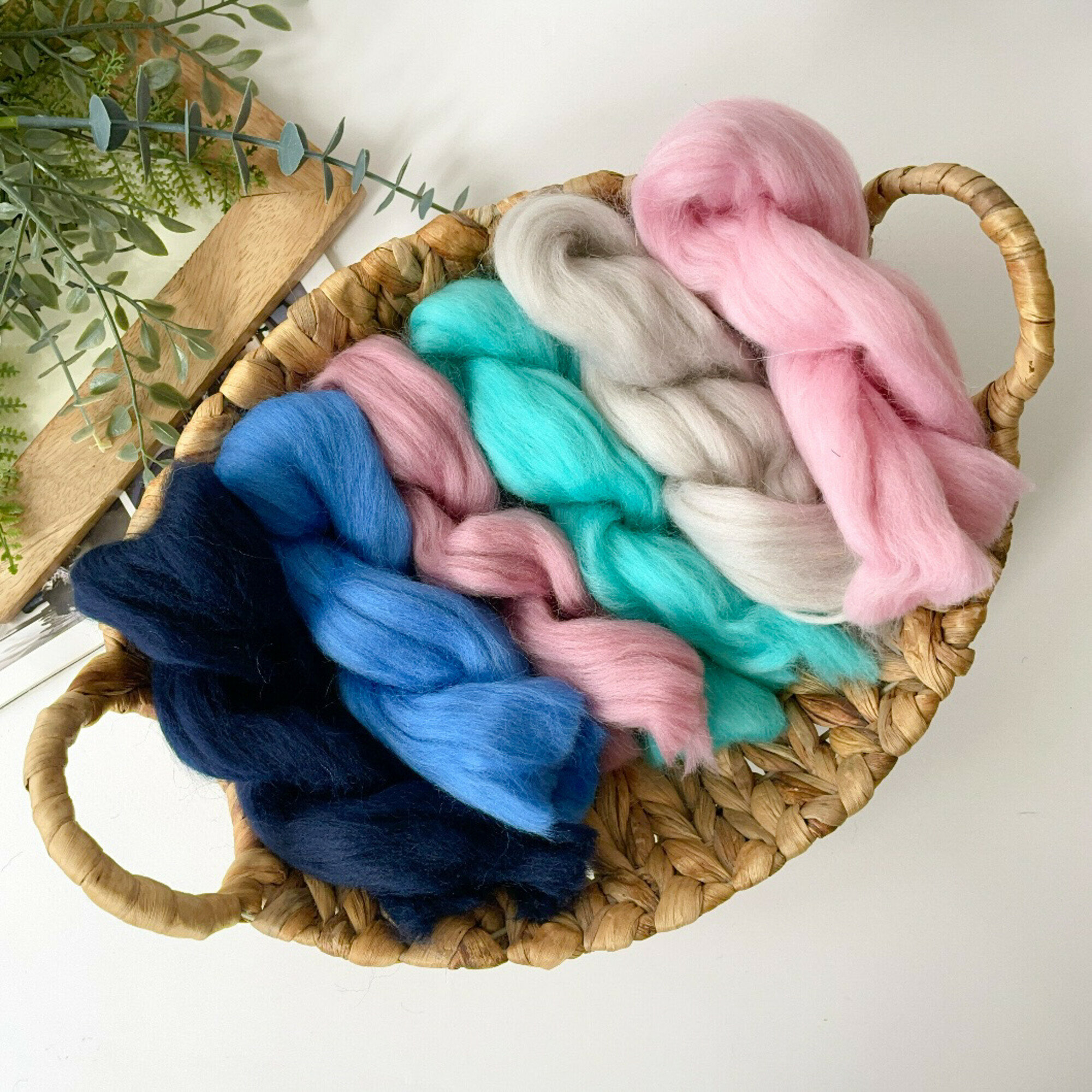 Шерсть для валяния, Нежная свежесть, состав шерсть 100 %, набор 6 цветов